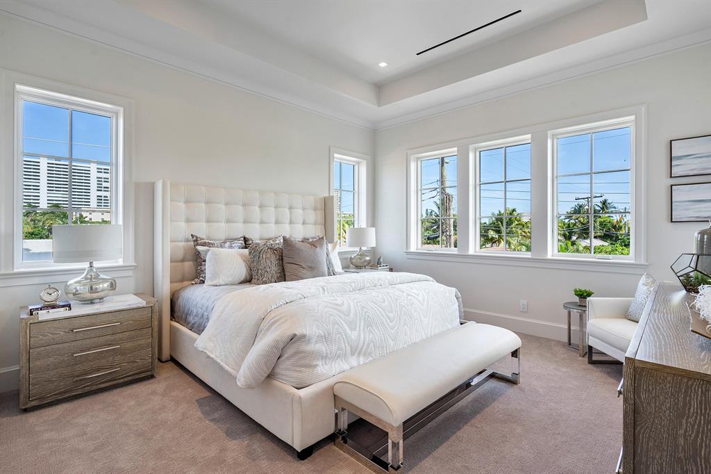 High End Seaside New Construction Estate just completed Located in the exclusive East Boca neighborhood just blocks from the ocean and The Boca Raton Resort. This luxurious, designer home features 4 en-suite bedrooms, 5 bathrooms, 2-car garage and a stunning pool area. Masterfully designed by Sketch A Design Studio & built by Shoreline Building Group; this two-story unique build showcases subtle, sophisticated spaces with beautiful light oak wood floors throughout main areas, vaulted ceilings with cascading chandeliers & elegantly blends warm woods and stone features with sleek industrial finishes. The open-concept main floor boasts a European-style kitchen with Neff cabinetry, hidden butlers pantry, 10 ft* chef's island & Thermador appliances. owners morning bar, his & hers wa