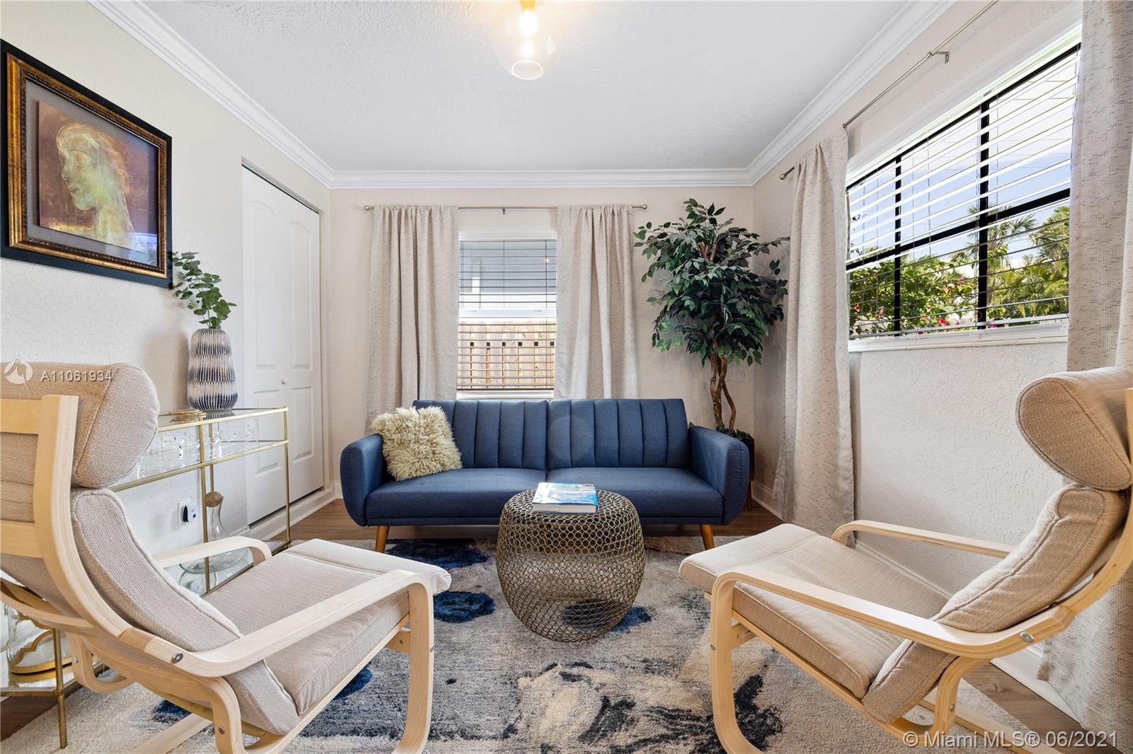 Welcome to the Mid-Mod Tropical Oasis! Updated modern carefree living, plus great flex space and expansive rear gardens with an Instagram-ready majestic black olive tree! So much room to relax, play or entertain. Enjoy the versatile floor plan, with dynamic open flow living, dining and great office space. Foodies will love the fresh updated kitchen with access to the rear gardens- a perfect spot to fire up the grill! Binge on your favorite movies in the expanded media room, also with outside access. Split bedrooms for extra privacy, including a spacious master suite retreat, and a den that can easily be converted to a fourth bedroom. Bonuses: new roof, impact windows-doors, and room for a pool. Your personal oasis on a quiet culdesac with easy access to restaurants, shops and the beach!