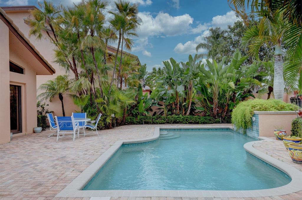 Enter this wonderful previous model home thru a beautiful tropical courtyard. Beautiful 1 story impeccable home with expansive gorgeous long lake views. Exceptional large pool deck area for great entertaining and FL living. Pool deck also has a BBQ and sink to enhance outdoor living. Large custom free form pool. White kitchen with stainless dishwasher-2yrs old, fridge approx 4 yrs old. Lite & bright home with SMOOTH CEILINGS thru-out. Open very large Family room and living room. Separate Dining room and 3 large bedrooms with split bedroom floor plan. AC approx 6 yrs old. Roof replaced in 2009. This won't last. Submit your best offer asap. Membership optional.