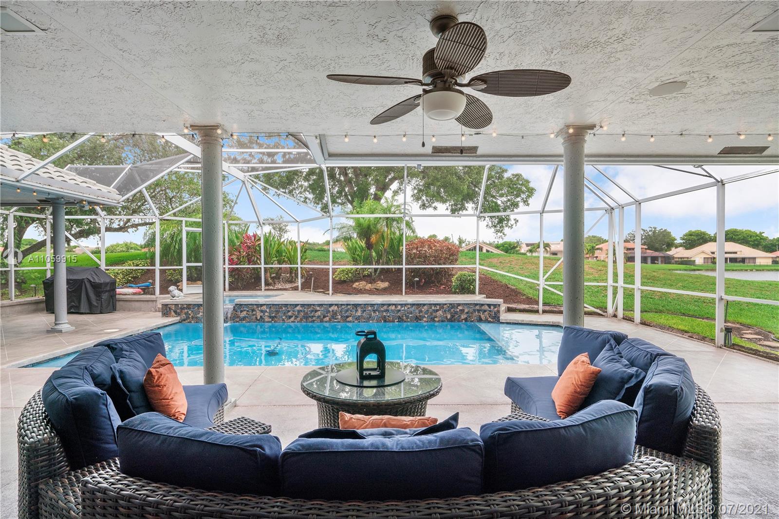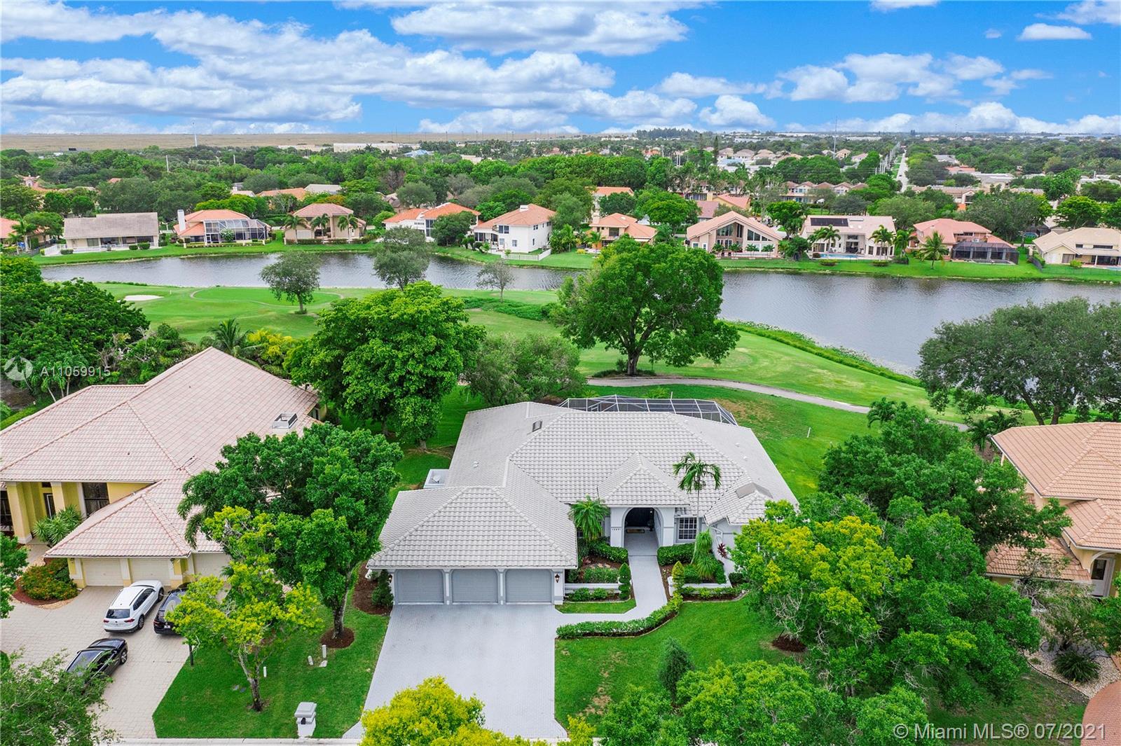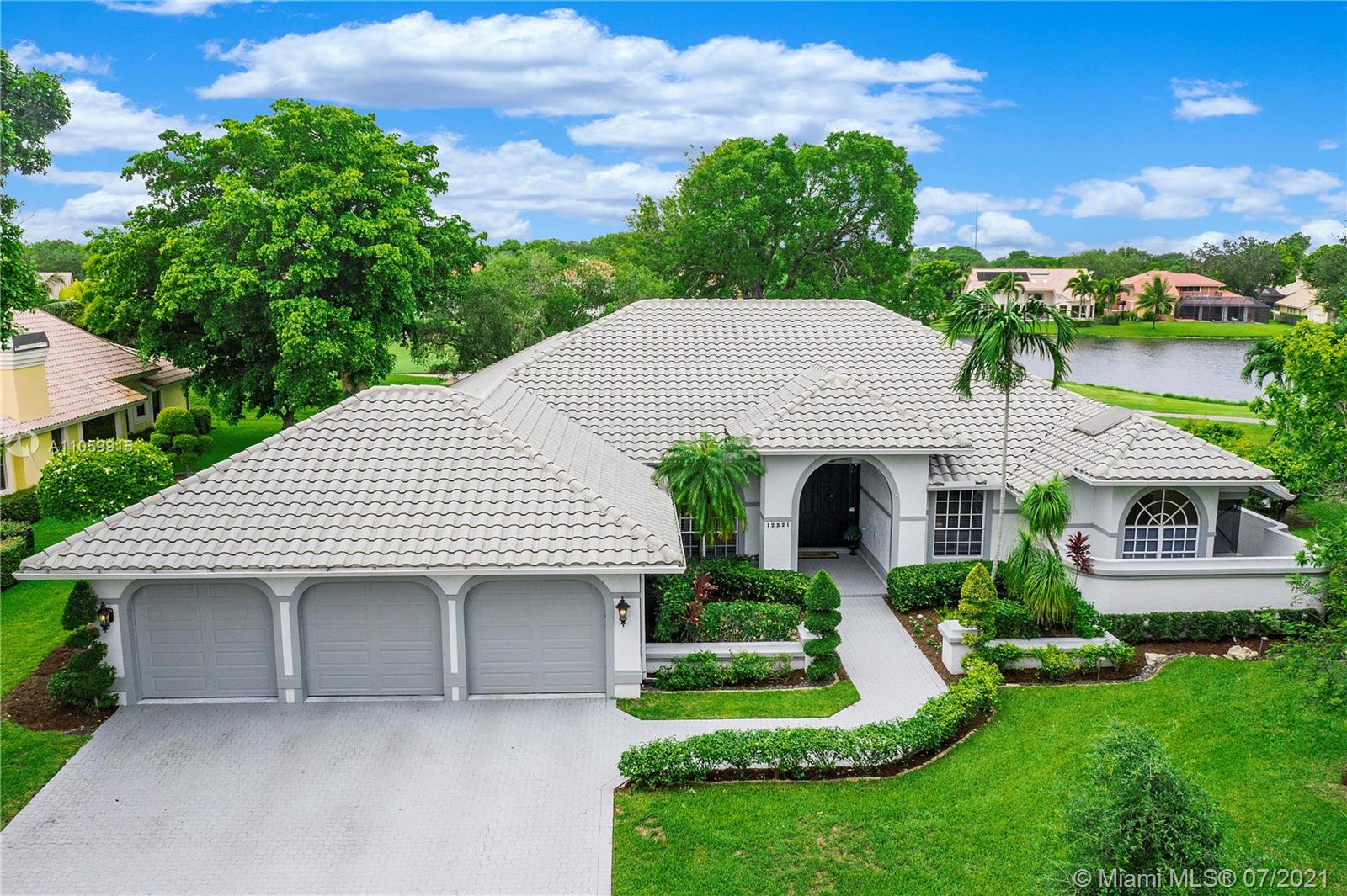 Beautiful 5-Bed, 4-Bath Pool Home W/ 3-Car Garage & Panoramic Views Of Golf 5th Hole & Lake Located In Prestigious Eagle Trace Coral Springs. 24 x 24" Tile Floors In Common Areas & Hardwood/Wood-Plank Tile In Bedrooms. Custom Upgraded Eat-In Kitchen W/Quartz Counters/Backsplash, Kitchen Aid SS Appliances, Wood Cabinets, Pantry W/Pull-Outs, & Recessed Lighting. Formal Dining Room, Large Open Living Room, & Mudroom W/Samsung Washer/Dryer & Farmhouse Sink. Hall Cabana Bath W/Frameless Shower. 4 Guest Bedrooms, 1 EnSuite W/Quartz Counters, Wood Vanity & Shower/Tub. French Doors Open To Master Suite W/Sitting Area & Bath W/Dual Head Shower, Jacuzzi Tub, Custom Built-In Closets, & Bay Window. Resort Style Yard W/Saline Heated Pool/Spa, Lush Landscaping W/Lighting. 2018/2019 3 Zone AC, Must See!