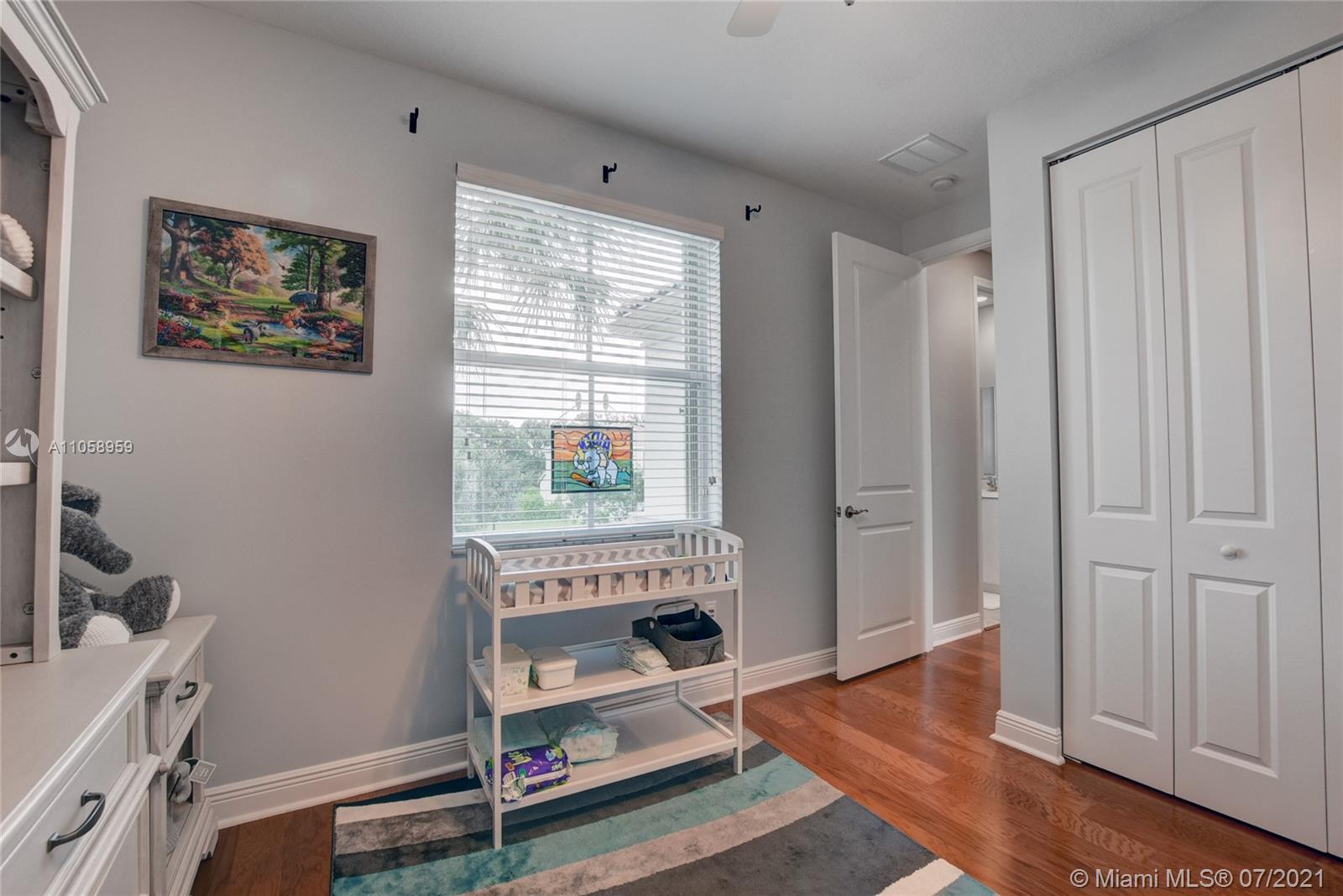 Rarely available Cortina 4 model on an expansive 10,000+ sq. ft. lakefront lot. The flexible floor plan offers options for today's buyers. Downstairs is light, bright, and open with high ceilings and large neutral diagonal tile. Part of the space can be easily enclosed, if desired, for an additional bedroom; home office; work/study space; home gym; or craft room. Multiple sets of sliders open up the living space to an oversized pavered lanai which is partially covered and fully screened for enjoying the long and wide lake views year-round. Warm hardwood flooring welcomes you on the staircase and throughout the upper floor. The main bedroom provides a large balcony for an additional oasis from the everyday hustle and bustle. Plenty of room for a pool plus amazing community amenities!