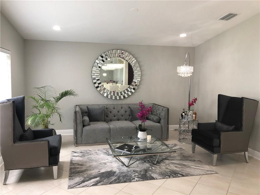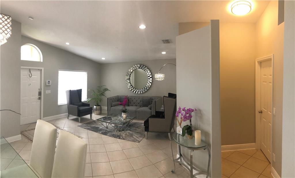 Modern and Fully Furnished 3 bedroom 2 bathroom home located in the tranquil Village at Harmony Lakes. Split floor plan, magnificent kitchen, bright dining room, elegant living room, spacious family room, tiled throughout, waterproof laminate in bedrooms, brand new HVAC system, huge gazebo overlooking a beautifully lit private pool. This home is ready for move in on day 1! Don't wait to schedule your appointment today!