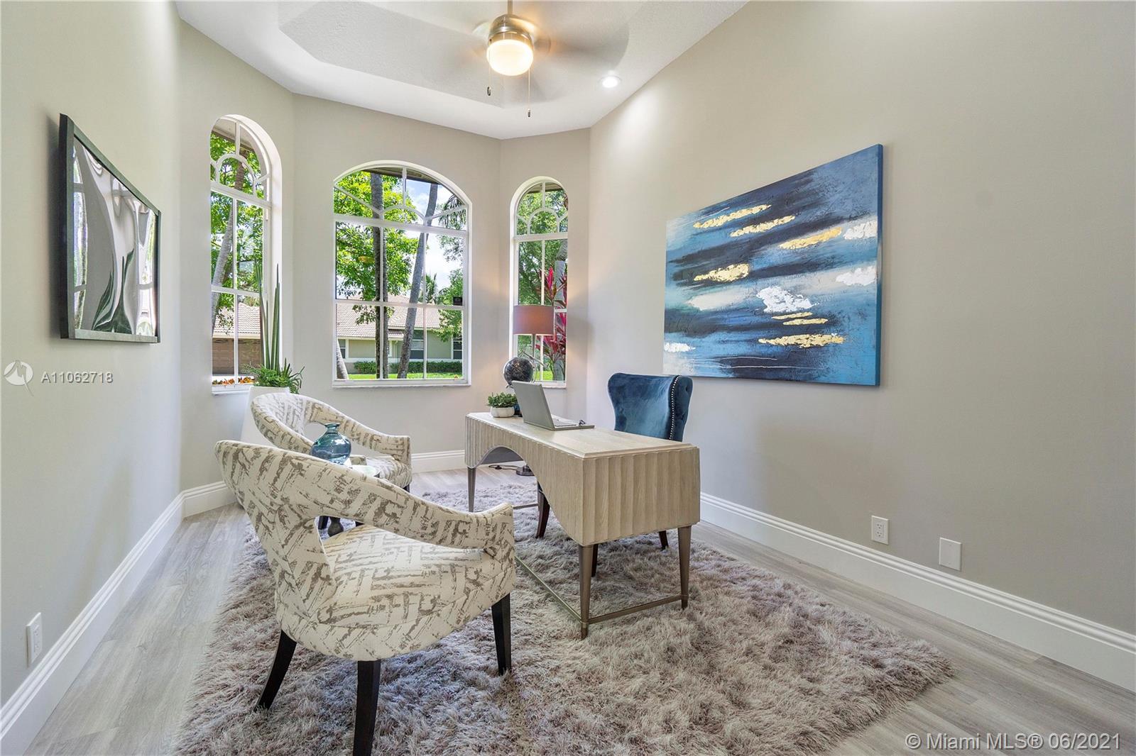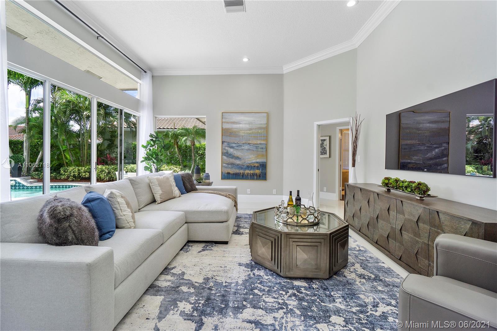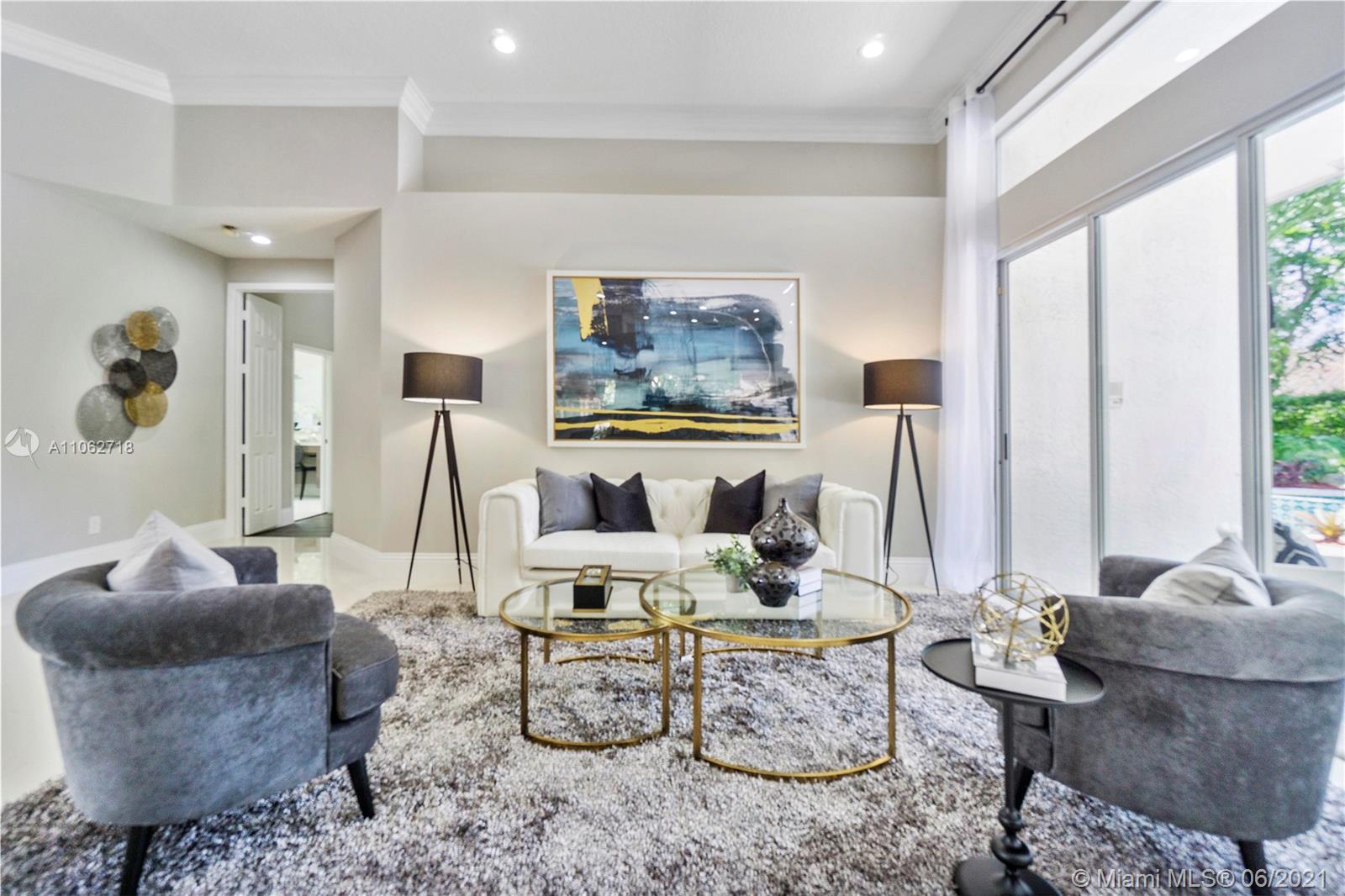 Welcome home to the premier gated community of Meadow Run! This beautiful 5/3 with a den features new floors, contemporary eat in kitchen, LED lighting, quartz countertops throughout, crown molding, remote control fans and designer chandeliers. THe master bathroom boasts elegance with its free standing tub, LED state of the art shower system and quartz countertops. Enjoy your morning coffee in your tropical oasis or a cocktail at the end of the day while relaxing in your waterfall jacuzzi. 2 new a/c units, Electrolux washing machine/dryer, a true three car garage with a closet in it and a fabulous dressing room that is perfect to display his/hers shoes, handbags and clothing. All lighting, fans and window treatments stay. $950 capital contribution to Meadow Run due at closing.