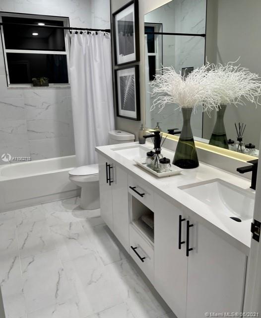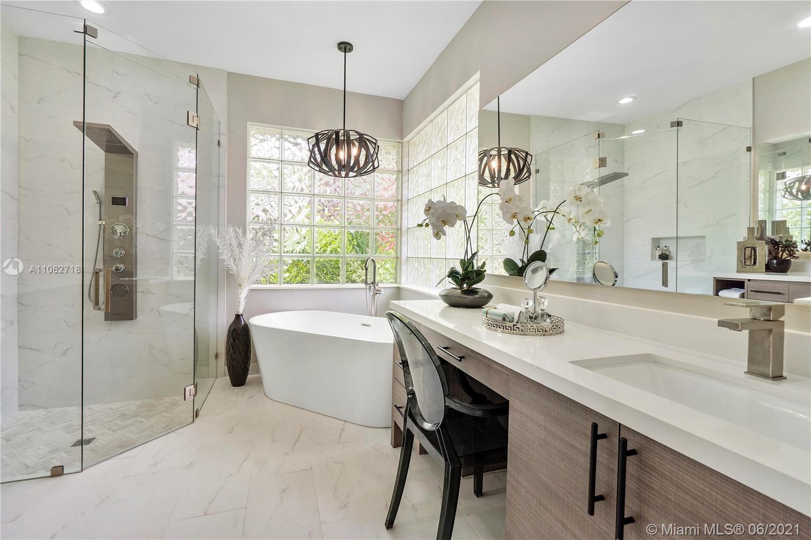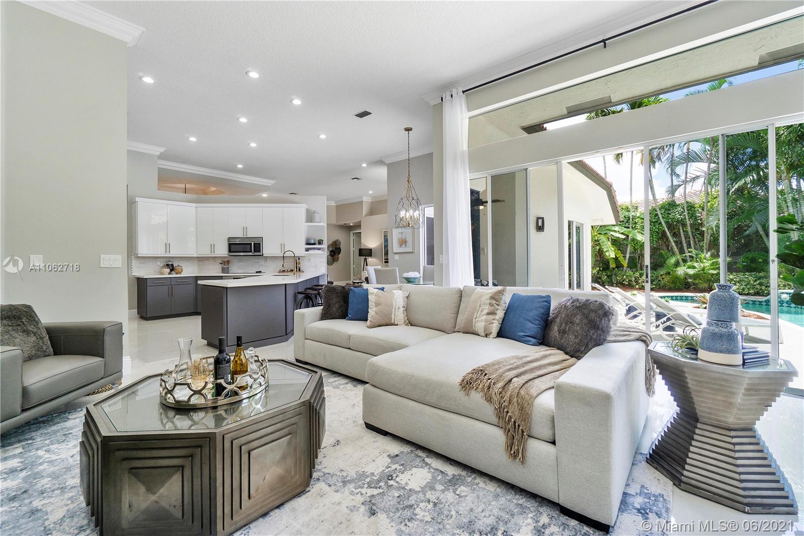 Welcome home to the premier gated community of Meadow Run! This beautiful 5/3 with a den features new floors, contemporary eat in kitchen, LED lighting, quartz countertops throughout, crown molding, remote control fans and designer chandeliers. THe master bathroom boasts elegance with its free standing tub, LED state of the art shower system and quartz countertops. Enjoy your morning coffee in your tropical oasis or a cocktail at the end of the day while relaxing in your waterfall jacuzzi. 2 new a/c units, Electrolux washing machine/dryer, a true three car garage with a closet in it and a fabulous dressing room that is perfect to display his/hers shoes, handbags and clothing. All lighting, fans and window treatments stay. $950 capital contribution to Meadow Run due at closing.
