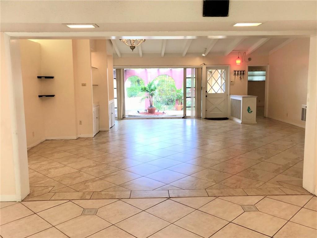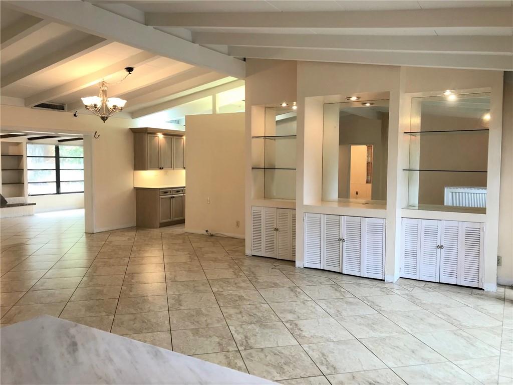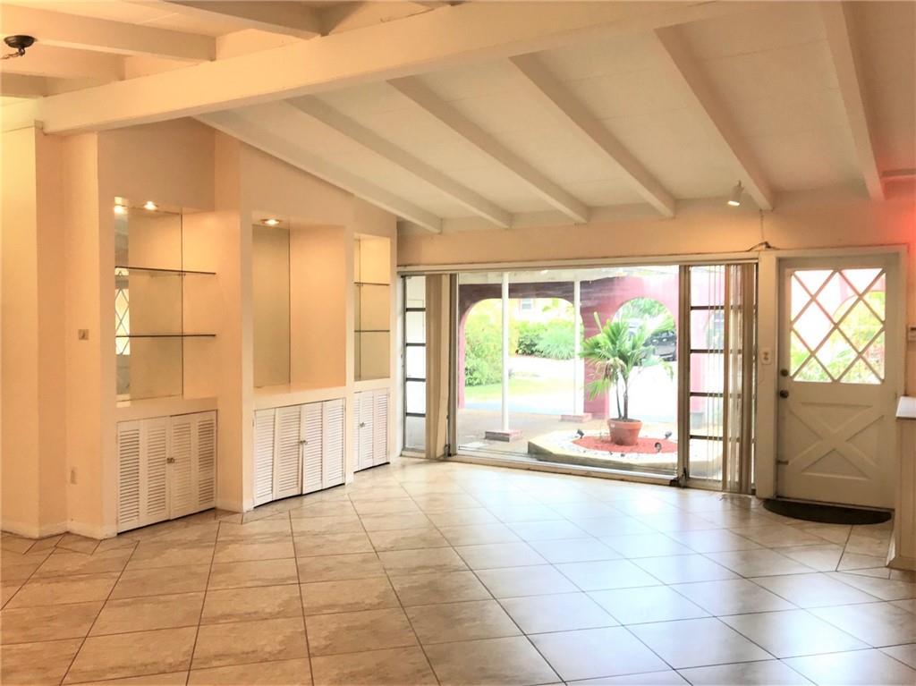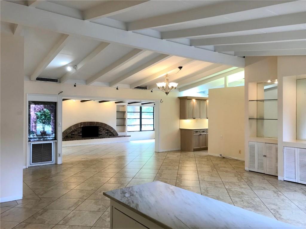 Spacious ranch style home in the waterfront neighborhood of Lauderdale Isles. Community boat ramp just around the corner. Open floorplan with vaulted beam ceilings throughout. Convenient access to the park right from your very own backyard. Charming Florida room with wood burning fireplace. Unique kitchen layout has atrium dining area. Completely fenced and private backyard. Relax out back on your deck and access the park from the gate on your fence. Enter the home through the front arches and wrought iron fence adorning the courtyard and covered parking. Dead end street with very little traffic. No HOA. A great place to call home.