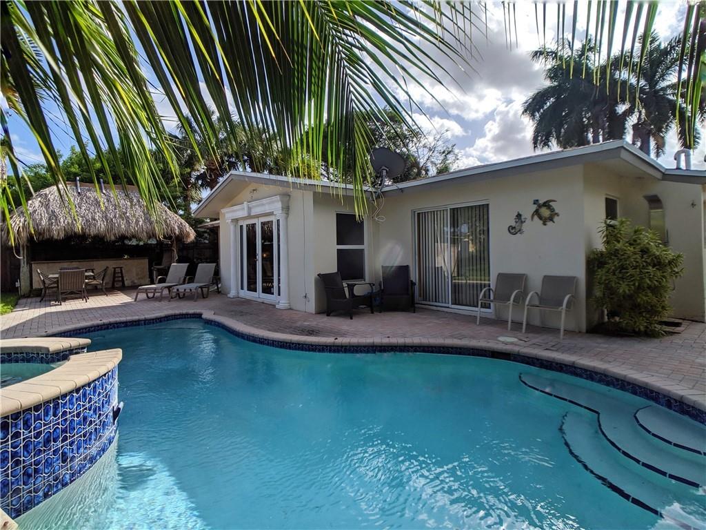 Waterfront 3bed/2bath split bedroom floorplan home located in East Pompano. Enjoy stunning views from the dock, pool, tiki hut or outside areas. Large circular driveway with 2 car separate garage with dedicated entrance at the front door (this would make a great 1 bedroom separate studio). Property is currently operating as a licensed vacation rental perfect for a buyer looking for cash flow or a seasonal residence (reservations and can be cancelled for an owner occupant). Newer 28ft dock and electric hot water heater. Newer pool equipment and separate heated spa/jacuzzi and pool. Walking distance to shops and dining. Beach access only minutes to the reinvented Pompano Beach Pier area and Lauderdale By The Sea. Don't miss this great opportunity to own waterfront in South Florida!