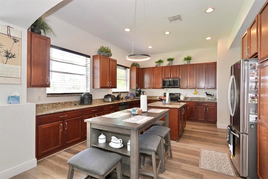 Stunning 2 story, lakefront home in sought after Terracina! 5 bedrooms, 4 full bathrooms, with a bedroom and full bath on the first floor. Spacious kitchen with SS appliances & granite countertops opens to large family room overlooking the lovely lake. All new luxury vinyl flooring on the first floor, interior freshly painted less than a year ago. 2nd floor offers 4 bedrooms, one with ensuite bathroom & walk-in closet, loft with outdoor balcony. Master bedroom has 2 walk-in closets & bonus room that could be office or workout space. Newly tiled Master bath. 2nd floor laundry room. 2 car tandem garage on one side and single car garage on the other.. 2 Nest smart thermostats & Ring doorbell convey. Terracina clubhouse offers newly renovated workout room, pool & children's playground.