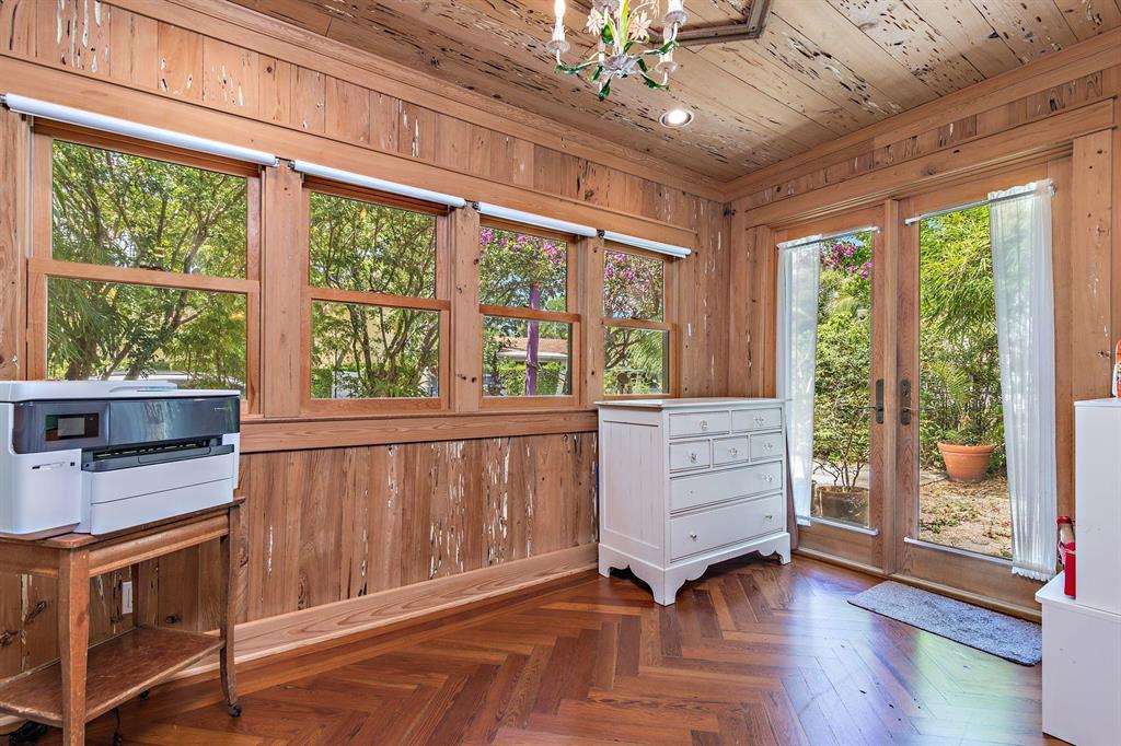 Grandview Heights Spanish style bungalow. Wonderful and perfectly charming 2+ bedroom, 1 bath home with gorgeous details! Stunning entrance room with reclaimed cypress from a Palm Beach estate and reclaimed herringbone wood floor, spacious living room with fireplace, dining room opens to updated kitchen, lovely hardwood floors throughout, a third bedroom is currently used as a huge master closet. Views of the park and perfect location, close to the tennis courts, downtown, Rosemary Square, the Kravitz Center, the Intracoastal, I-95 and the airport! This could be the ultimate secret get-away!