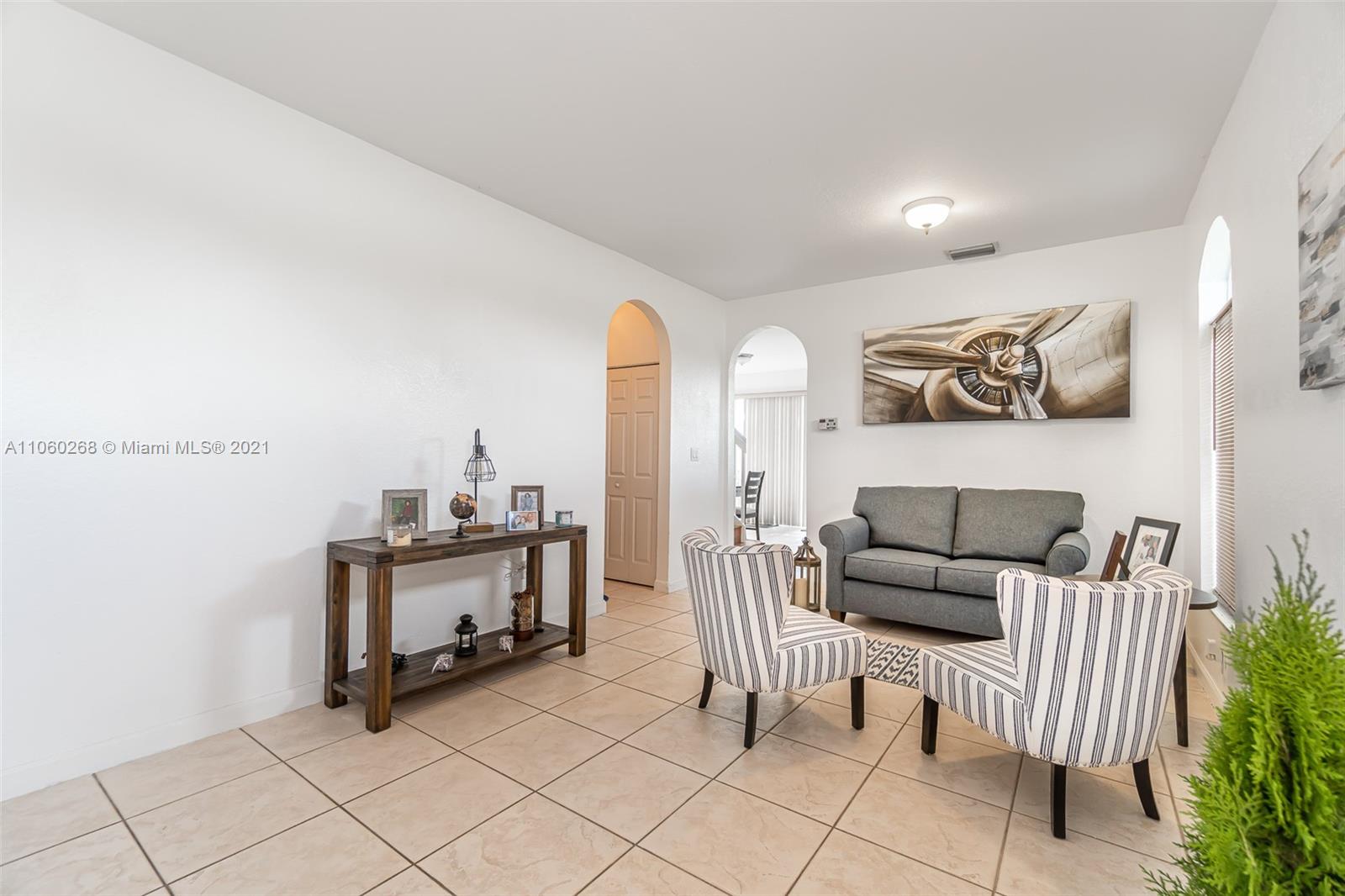 Nice townhouse featuring 2 bedrooms 2.5 bathroom plus Den which can be converted to a 3rd bedroom or office. Corner unit. Gated community. close to Turnpike. Dolphin Mall. Great schools in Doral. Community does not have a pool.