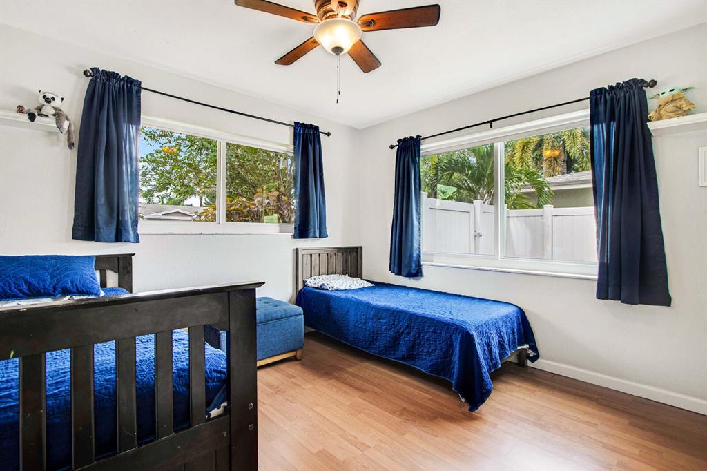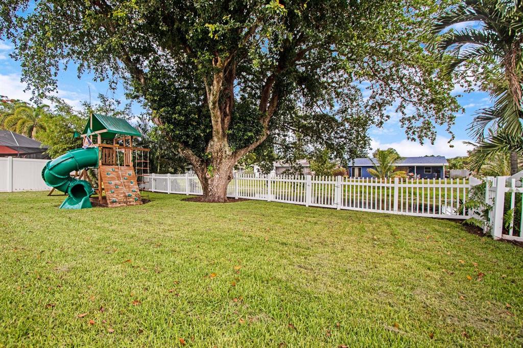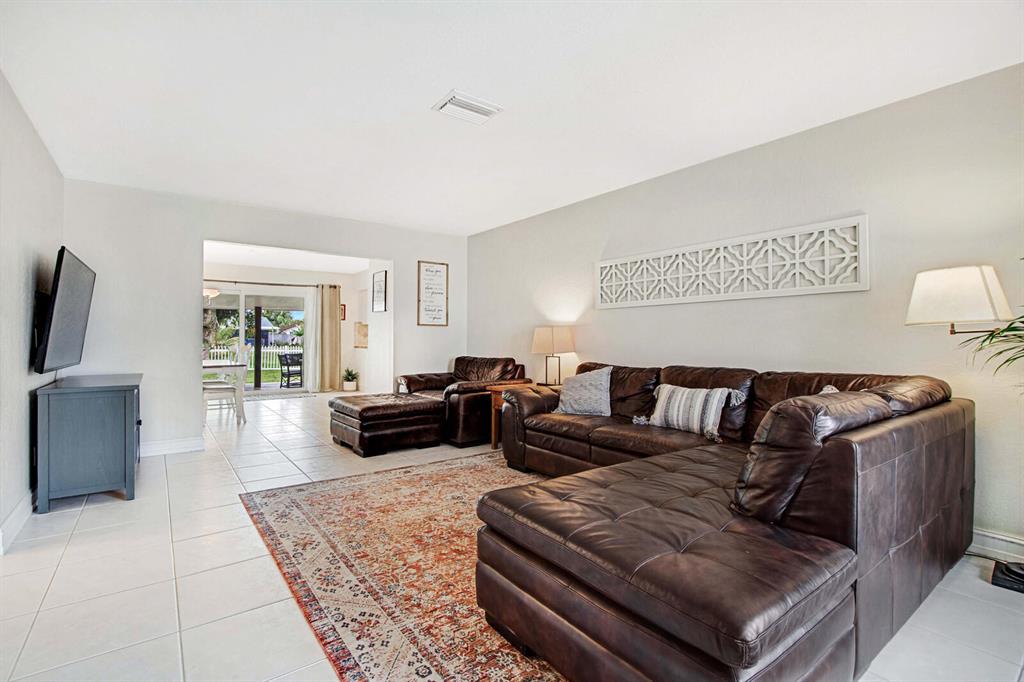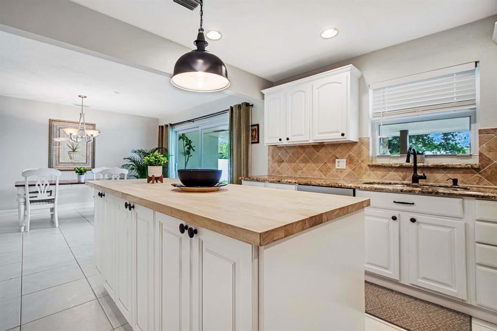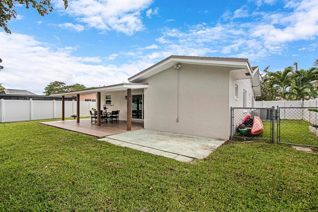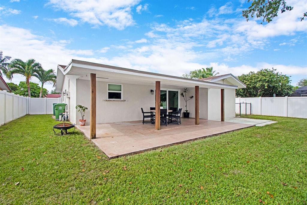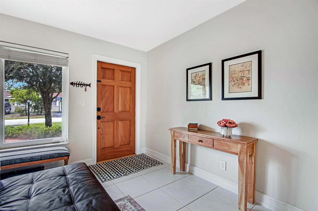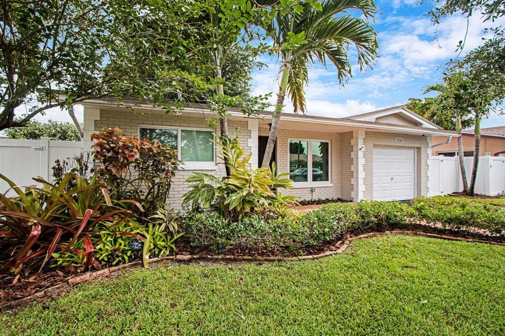 Beautifully landscaped and fully fenced, this home has no HOA, boasts serene water views and has sharp curb appeal. All windows & sliding glass door are high impact Low-E glass. Remodeled kitchen w/ SS appliances, new DW, granite countertops, built-in pantry and Butcher block island! Tile throughout, laminate in 2 beds. Chicago brick walkway and porch surrounded by lush lawn welcome you home. Huge backyard with covered patio is ready for Summer entertaining! Plenty of room for a pool and lots of upgrades to enjoy now. Canal-fed irrigation system keeps yard green all year! Close to Turnpike, I-95, FLL Exec airport, schools and places of worship; just 15 min to the beach!