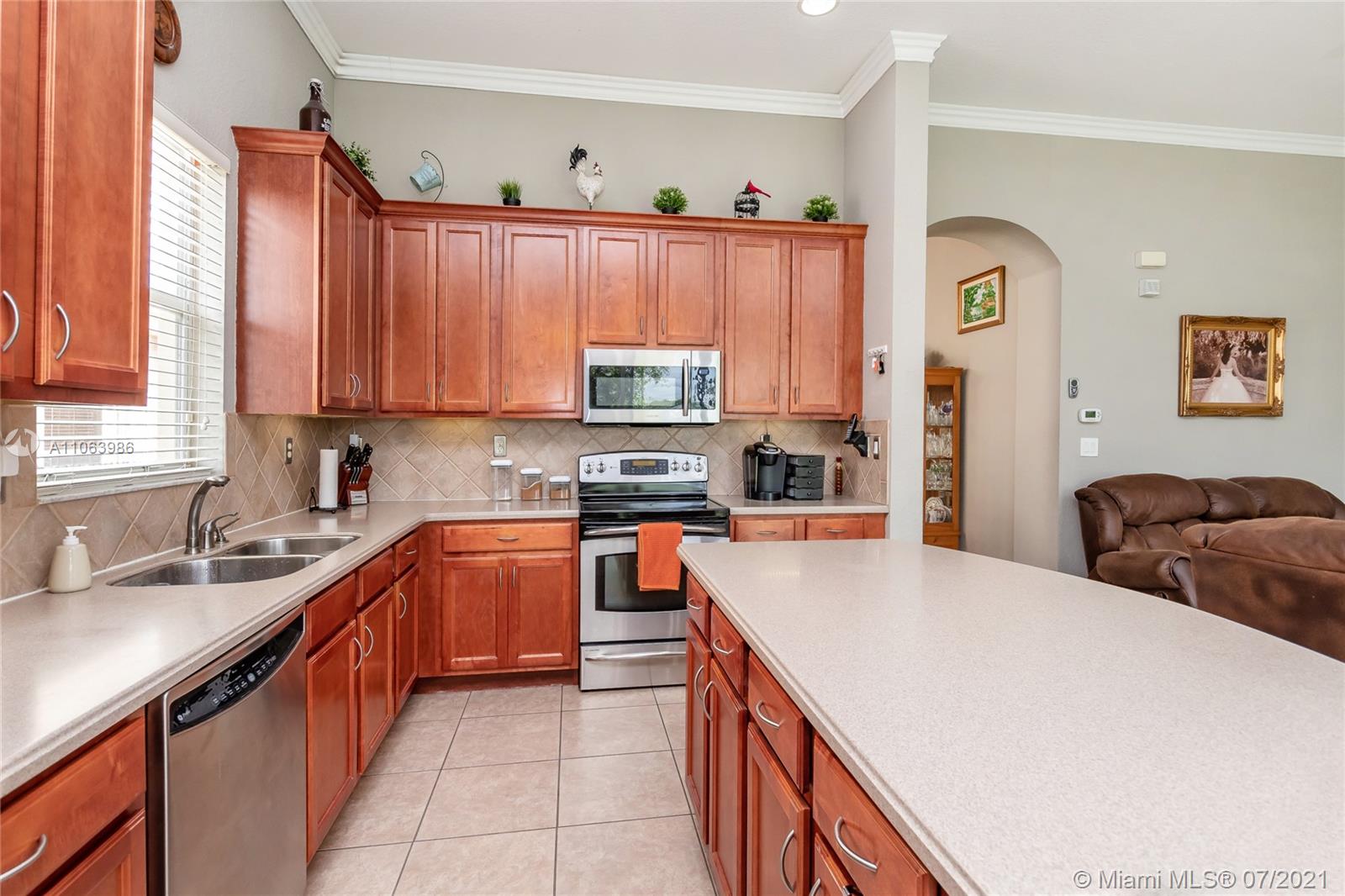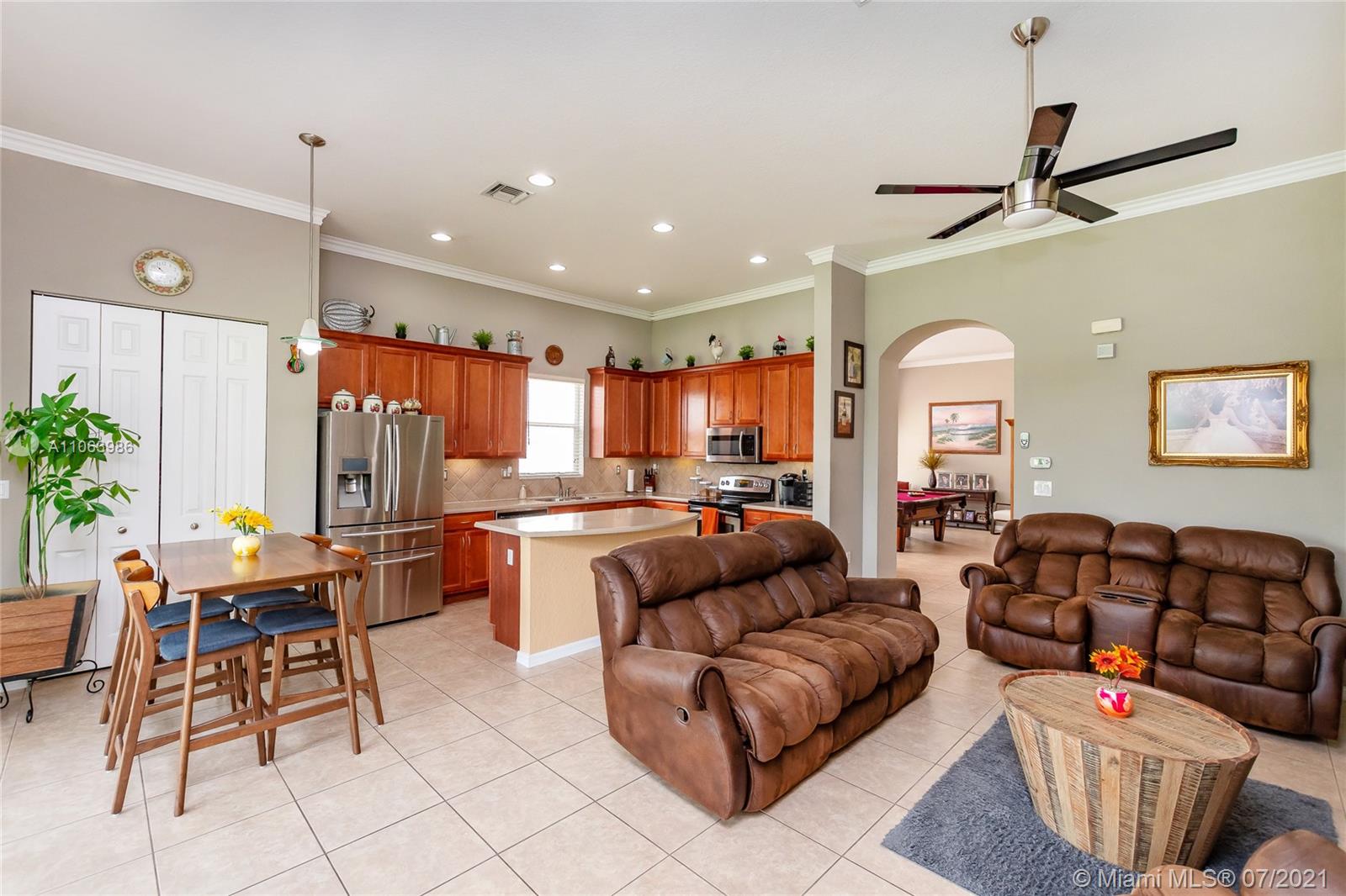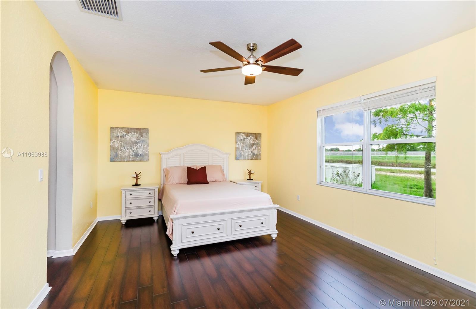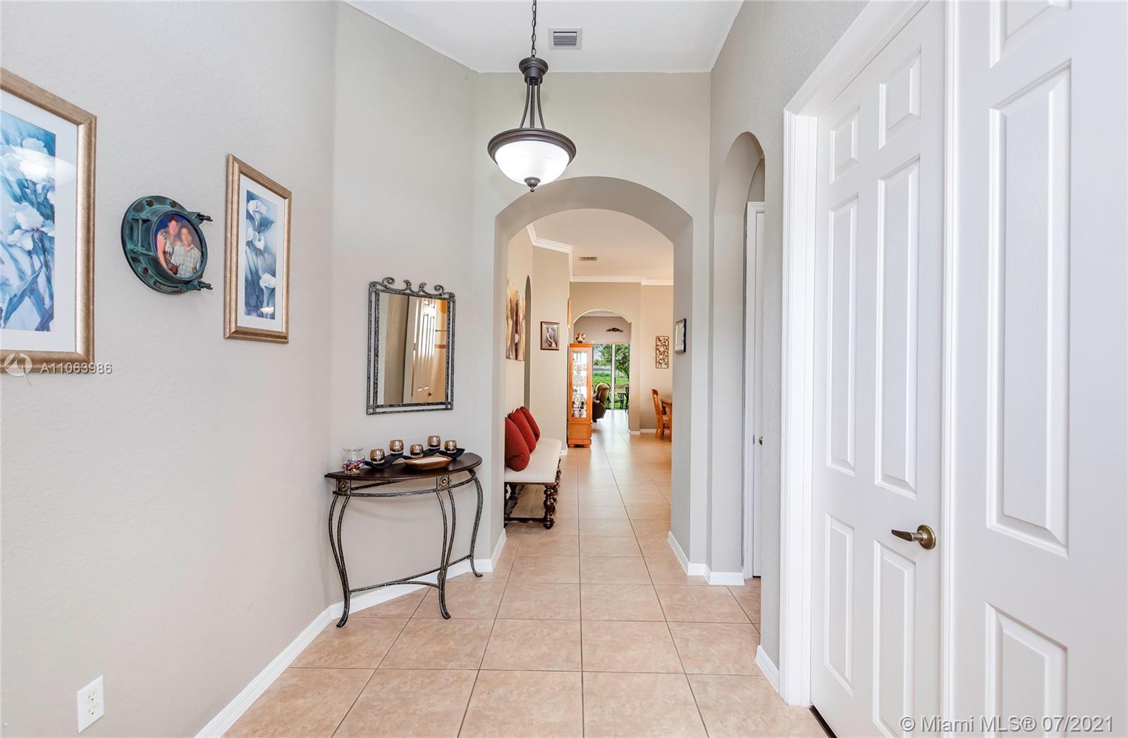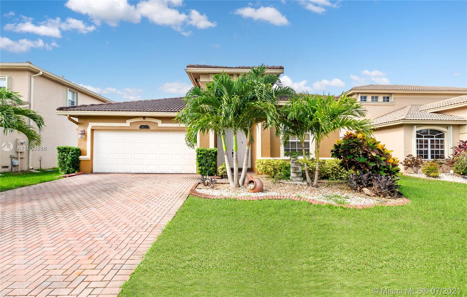 Welcome to this spacious home in the guard-gated community of The Reserve at Huntington. No rear neighbors offering extra privacy, featuring volume ceilings, an expansive master bedroom/bath suite with dual walk-in closets & double sinks. Open kitchen to family room, appointed with wood cabinetry, stainless steel appliances & Corian countertops. 3 bedrooms + Office/Den (4th bedroom) and 3 baths (1 updated). Indoor laundry room, tile flooring throughout social areas & guest bedrooms, plus wood-like laminate flooring in 4th bedroom & master bedroom. Newer exterior paint, room for a pool, located near I-75 & FL Turnpike, shopping & restaurants. Community amenities include pool, gym, clubhouse + parks with playgrounds. HOA covers in-home security alarm and cable.