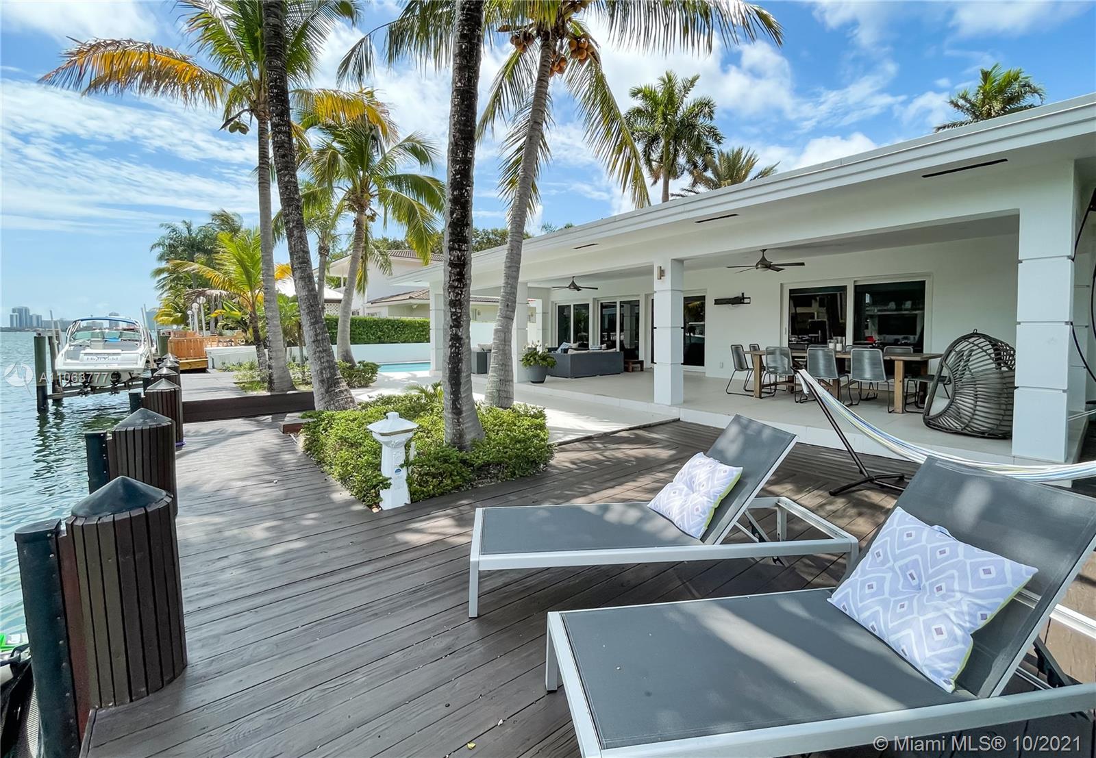 Keystone Islands, Miami waterfront home. A Boater’s Dream just 2 houses from Wide Biscayne Bay. Cruising or fishing in the Atlantic Ocean within 10 mins via Baker-Haulover inlet. Contemporary open kitchen concept. 3 Bedroom, 3 Bathroom, 2,915 sf home with pool and garage. Open floor plan. 40X16 Covered patio is perfect for outside entertaining. 75 ft on water with a boat dock that will accommodate up to 75 ft boat. Located in sought after 24hr Guard Gated Keystone Islands, Miami, FL. 5 Mins to Bay Harbor and Bal Harbor Islands. Walking distance to restaurants, Whole Foods Market and Publix Shopping Center.
