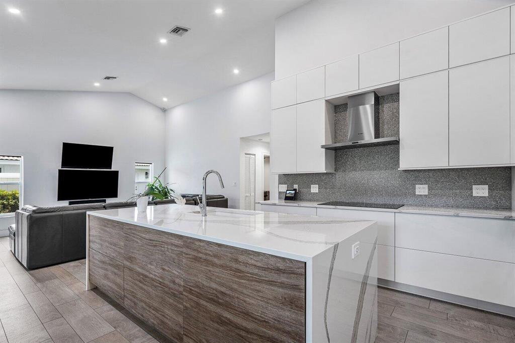 ***Modern Smart Home in Central Boca (New Floresta)***. All Hurricane resistant windows, doors, sliders This 4 bedroom recently remodeled home is centrally located near the upscale shopping mall at Town Center, restaurants, Woodlands Park and across the street from prestigious Pinecrest private school. The location is 5 min or less to FL turnpike and I-95. This luxurious home boasts clean lines and impeccable finishes throughout, which include top of the line fixtures, Cambria Brittanica Quartz throughout the house, oak hardwood floors in the bedrooms, stainless steel appliances, high ceilings and a beautiful landscape. This home features smart home automation giving you an effortless control of AC, TV, music, lights, blinds, security cameras, shades and pool heating - all w/ smart pho