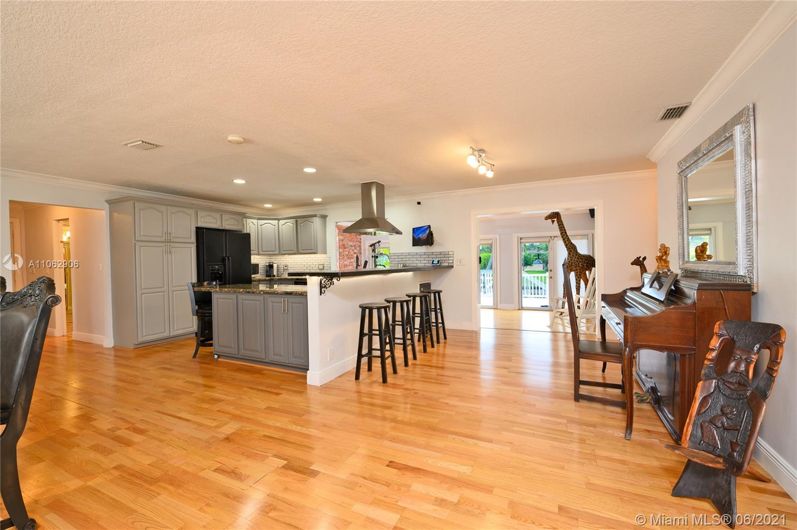 Be a boater or just live in paradise? Remodeled brick home with open concept kitchen, oak kitchen cabinets, granite counter tops, hardwood floors, crown molding and other great upgrades. Open floor plan. 2 large master suites both with en suites and office. Huge patio 180 degree tropical views facing waterway, 90 foot boat dock, high end sea wall, Koi ponds. Hurricane shutters storm impact glass. Tons of storage, walk in closets, large laundry room with additional large storage area from previous garage conversion. Great curb appeal Chicago brick driveway fits five cars and large front yard. Quiet cul-de-sac. 45 minutes from intra-coastal and ocean by boat, fixed bridges. Enjoy picturesque views from nearly every room in the house. House has one step inside and very small side yards.