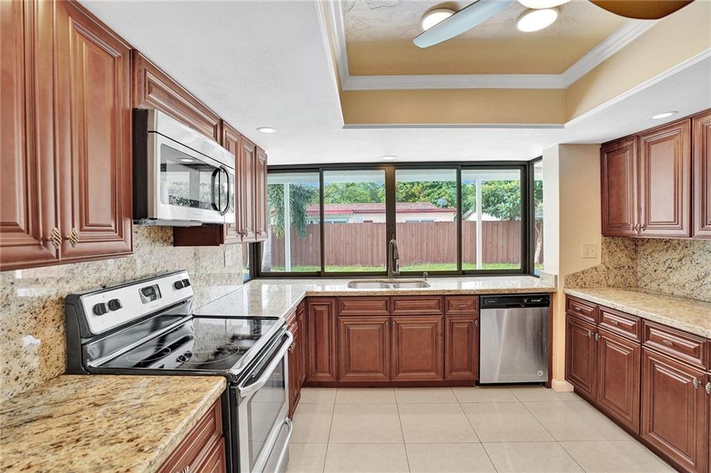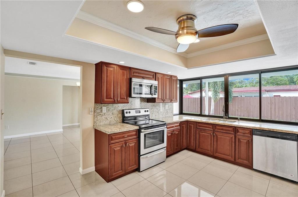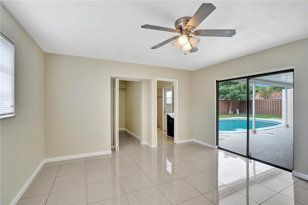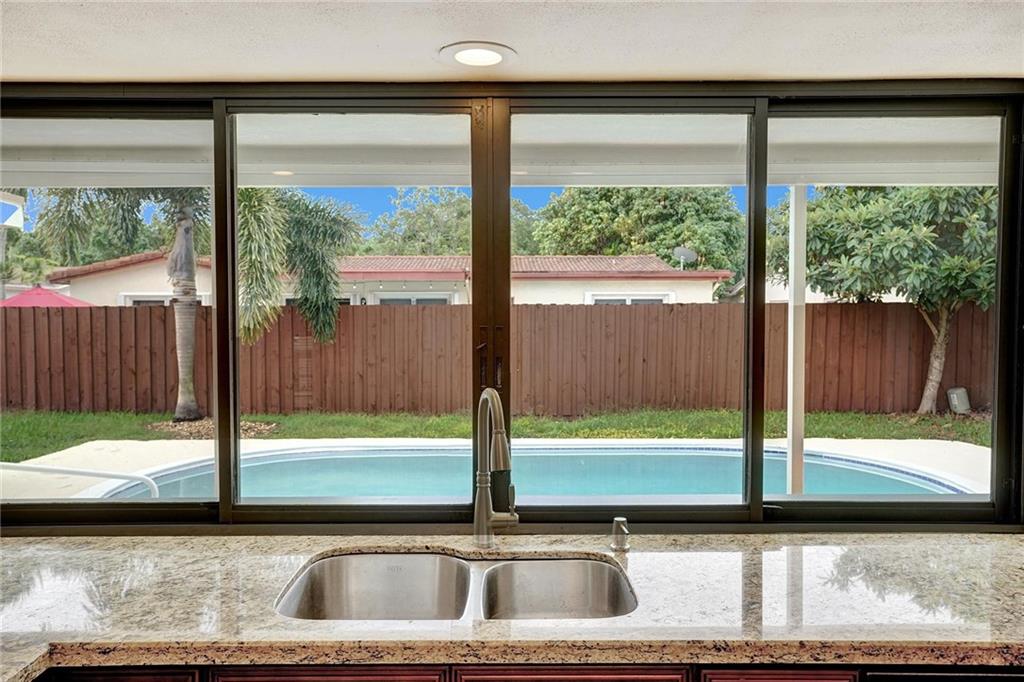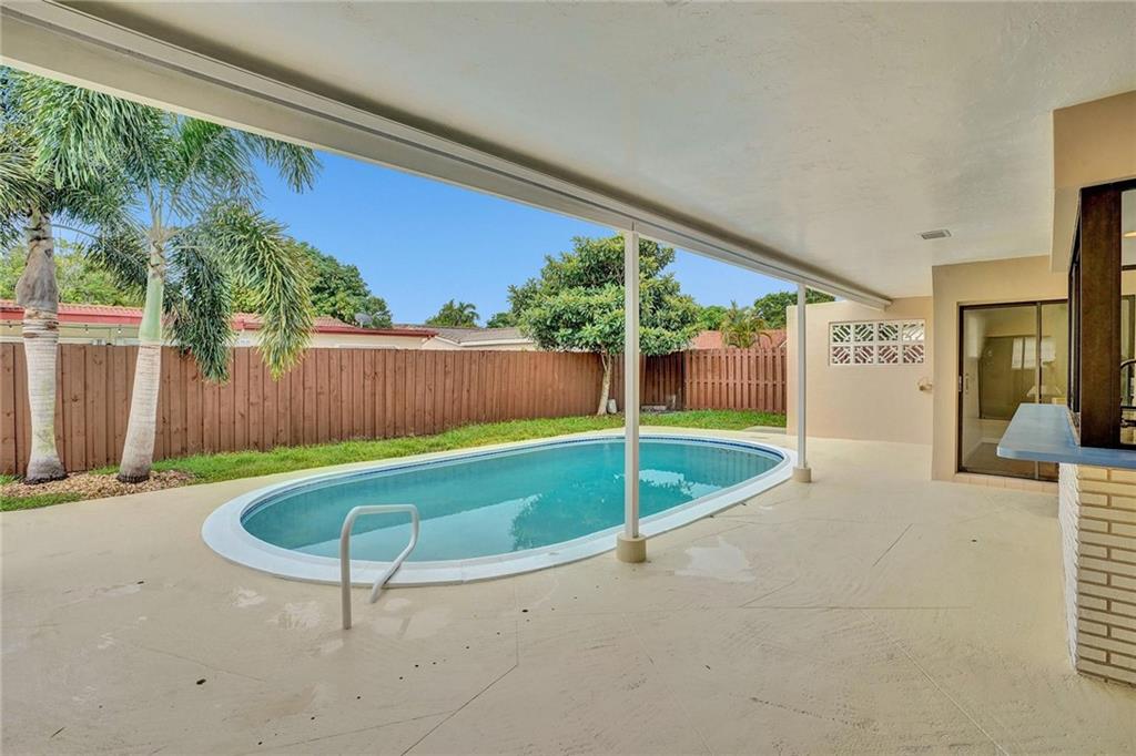 Updated home 4/2 with pool & 2 car garage. 4th bedroom/office/family room has view of patio and pool. No HOA! Freshly painted in side and out. Kitchen has cherry cabinets with granite counter tops and stainless steel appliances with pass thru window to pool. Great for entertaining under covered patio with very private fenced in back yard. Porcelain tile 2018 in main living area including master bedroom with over sized master closet. Both bathrooms have been updated. A/C is 2016 with coils replaced 2021. House is move in condition.