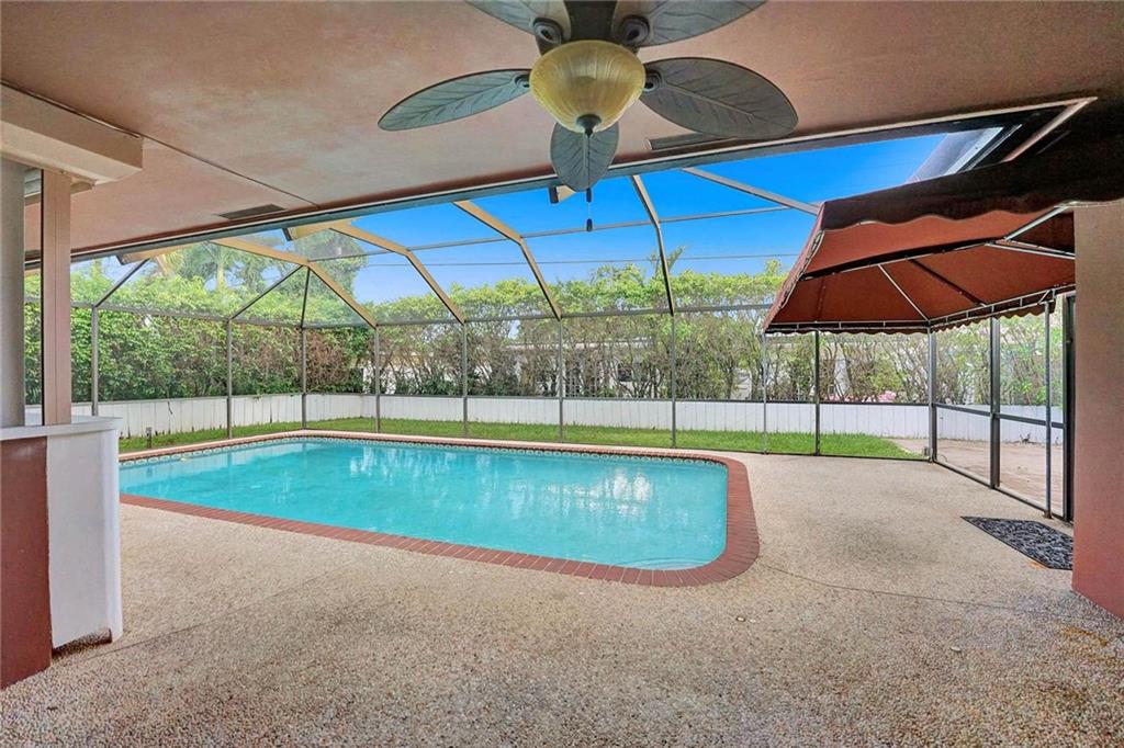 Now Offering, This wonderful home located in Imperial Point neighborhood. Freshly painted interior, new flooring in bedrooms. The property offers a large open floor plan with a screened-in swimming pool. 3 bedrooms 2 bathrooms. Great space for entertaining, The Pool can be viewed from all the main rooms. The Interior and exterior have been freshly painted. The Home currently has the 3rd bedroom which was converted from the original garage. Off of the pool in the backyard is a large paved courtyard for outside seating. Great space to put a grill or build your own outdoor kitchen.
