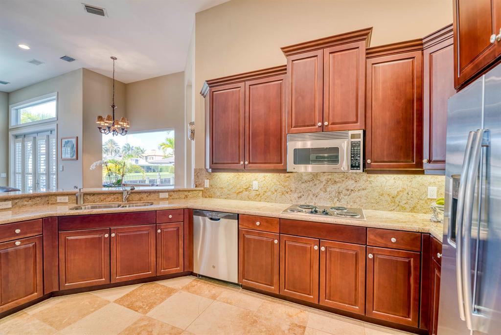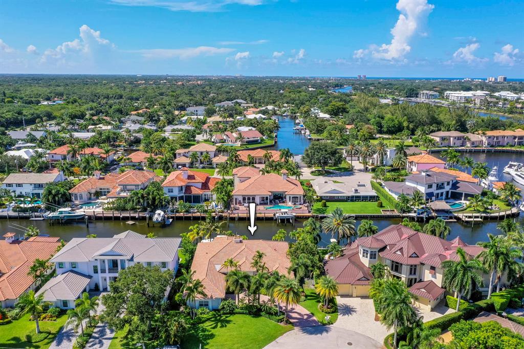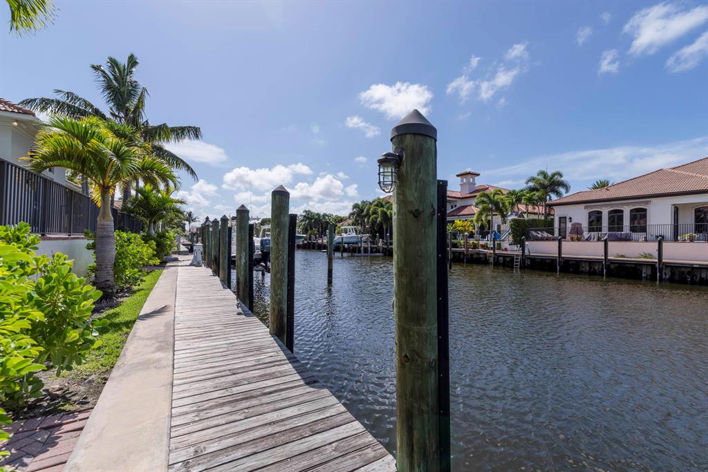A boater's dream home with 100ft of waterfrontage with direct access to South Florida's renowned Intracoastal Waterway! This spacious 4BR/4BA home offers a split bedroom layout with a separate office and other desirable features and upgrades throughout such as a spacious kitchen with granite countertops, stainless steel appliances and a breakfast nook, a huge family room with French doors leading to the patio and stunning views of the water, a wet bar area with mini fridge and wine cooler, and an incredible red brick paved patio area with a built-in summer kitchen, cypress ceilings, TONS of room for relaxing and entertaining, and a spa-like pool with hot tub. Then step down to find your private 100ft dock with 14,000 lb boat lift that can fit up to an 85ft boat.