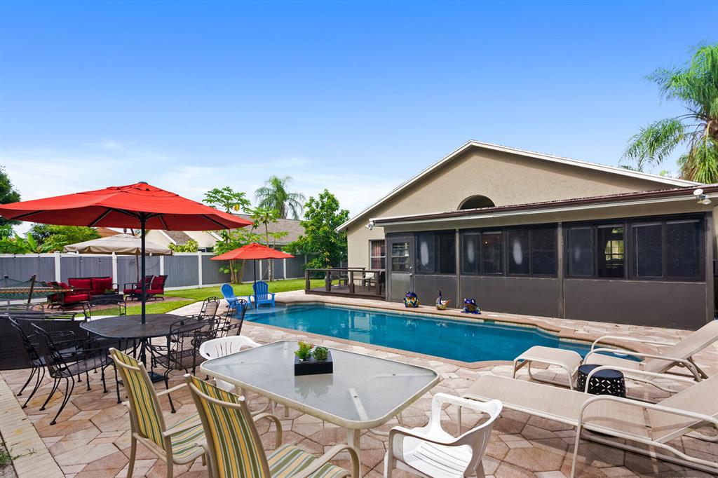 MULTIPLE OFFERS RECEIVED. PLEASE SUBMIT HIGHEST AND BEST BY 7/4 @ 5PM. Do not miss this opportunity! Beautiful 4 bedroom, 2.5 bathroom, pool home in the gated community of Foxhall! Features include an open floor plan, first-floor master, large Florida room, 3 guest bedrooms upstairs, interior laundry room, 2 car garage, and a gorgeous pool with water feature. The exterior was just painted, a new vinyl fence installed, plus storm protection via panel shutters. HOA includes cable and internet. Community amenities include pool and playground.