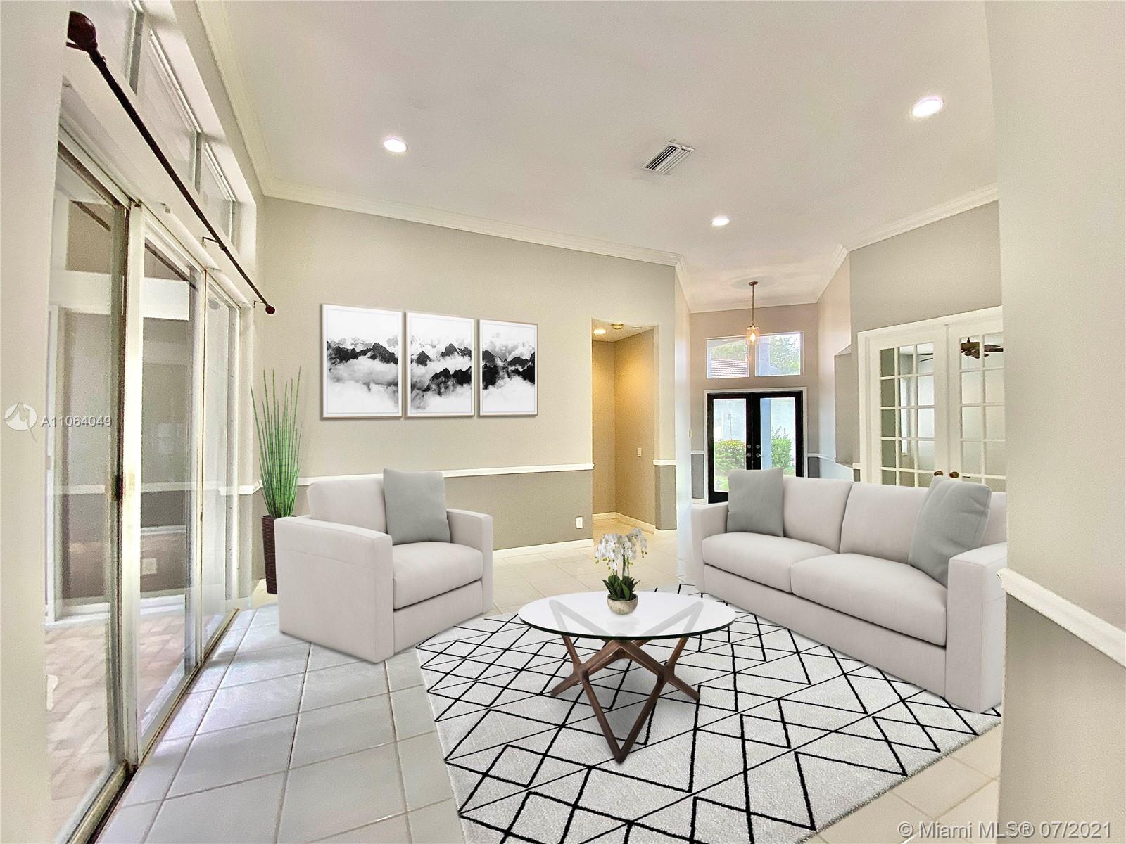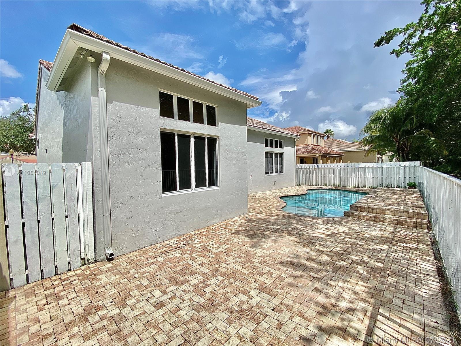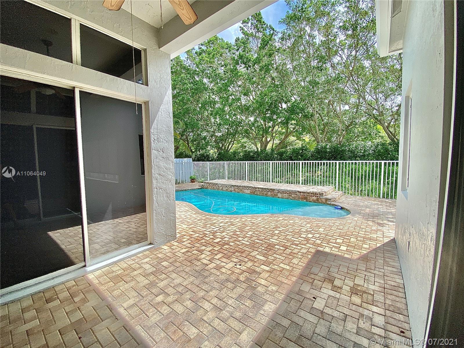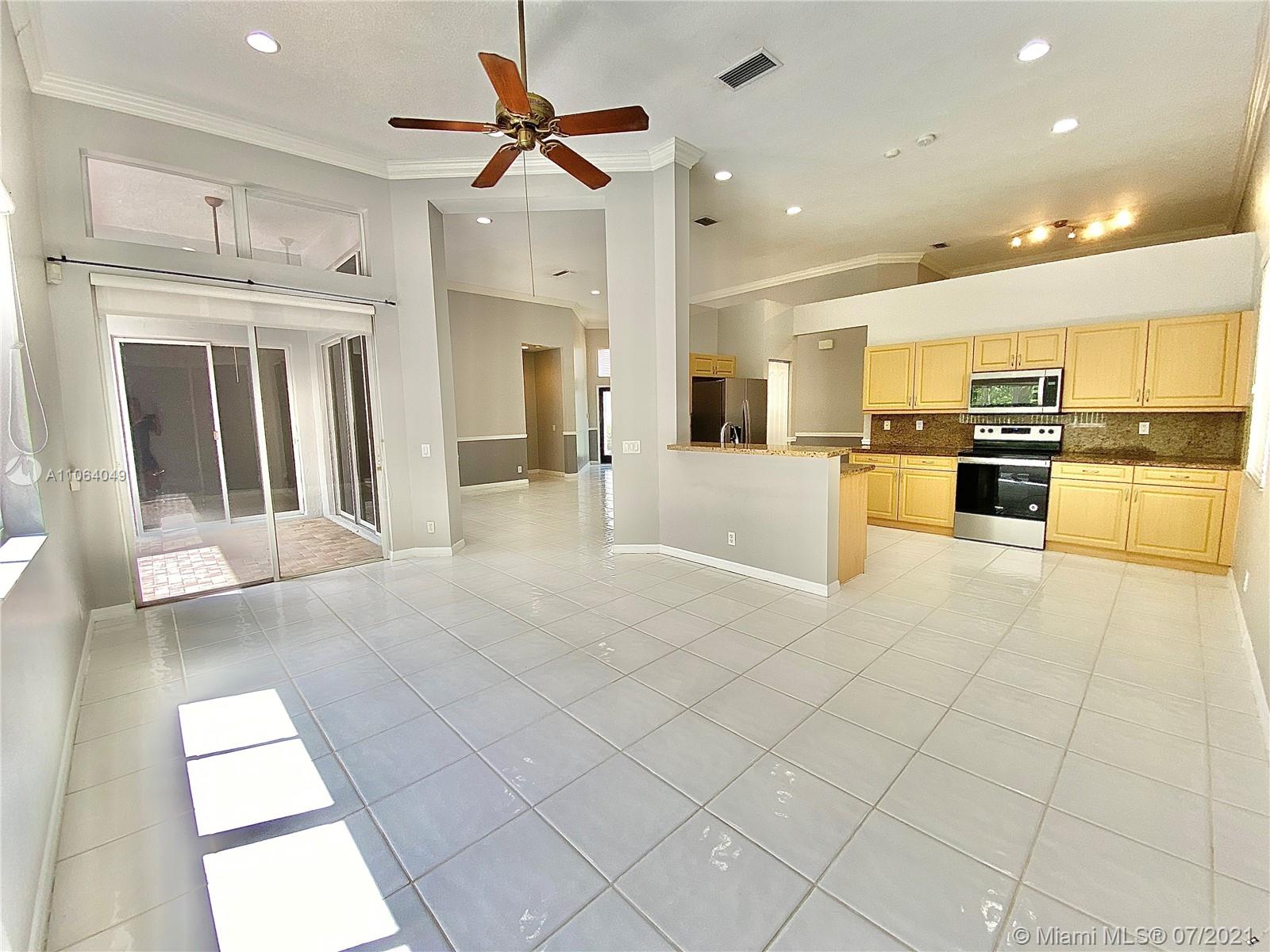 TALK ABOUT LOCATION! IMPRESSIVE 1 STORY POOL HOME AT THE ISLANDS BOASTING HIGH CEILINGS & PLENTY OF NATURAL LIGHT. FEATURING WOOD & TILE FLOORING, SPACIOUS KITCHEN WITH GRANITE COUNTERS & BRAND NEW STAINLESS APPLIANCES. THIS PEFECTLY LAID OUT FLOOR PLAN OFFERS LARGE & INVITING SPACES WITH FORMAL DINING, LIVING AND FAMILY ROOMS, 4th BEDROOM USED AS OFFICE/DEN. RECENTLY UPDATED A/C UNIT (2020) NEW EXTERIOR & INTERIOR PAINT, FENCED BACKYARD WITH BRICK PAVERS. GATED COMMUNITY WITH BASKETBALL COURTS & PLAYGROUND, SO CLOSE TO WESTON TOWN CENTER, BEST SCHOOLS AND MAIN ROADS! *Owner will credit buyer for Accordion Shutters Installation throughout the home*