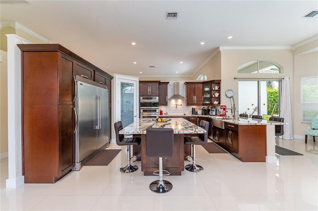 Welcome HOME! Impeccable Single Story Home, located in the prime and highly sought after, Pasadena At Pembroke Shores subdivision. Upgraded kitchen with enormous island with built-in wine cooler and quartzite countertops, Living Room, Dining Room and Huge Family Room. Features include Espresso kitchen, 65in refrigerator & freezer, Built-in microwave & oven combo, Large walk-in pantry, Glass cooktop, Kraus Farmers Sink, Under sink reverse-osmosis water filtration system. 12ft vaulted ceilings, LED interior lighting, Porcelain 32x32 tiles throughout the home and walkway, Tankless water heater, Hurricane accordion shutters, 2 AC Units, Salt Water Pool. Master bedroom offers his and hers walking closet and master bath has dual sink. Oversized driveway and 3 car garage. 4 Bedroom and 3 Bathroom