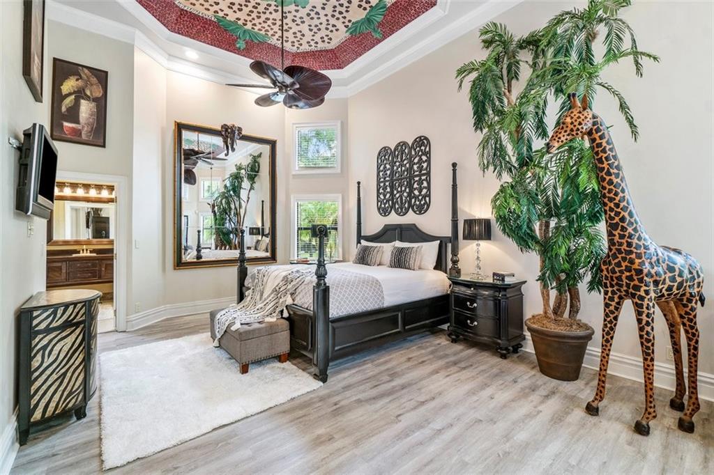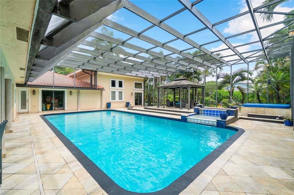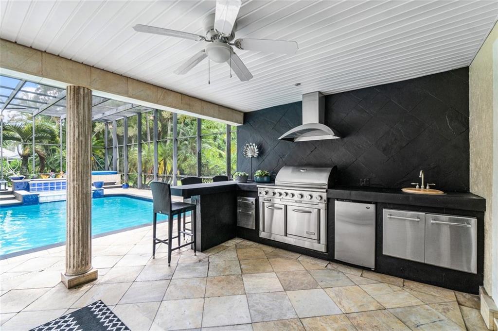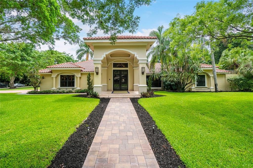Simply a beautifully luxurious residence! The designer, with a critical eye, incorporated the finest materials & finishes when creating this dramatic yet light/airy home. Newer epicurean kitchen with crisp white cabinets and top-shelf appliances! 2 spacious master suites (one with a kitchenette) both with spa-like bathrooms make it perfect for a multi-generation household. Breathtaking outdoor spaces feature an oversize pool with a water/fire feature & a full-service summer kitchen. Sited on an impressive corner lot with a sprawling lawn, manicured landscape, & a jaw-dropping double door entry add to the splendor of the home. Designed to ensure residents & guests have their own private space. Offerings: most bedrooms have ensuite bathrooms, impact windows/doors, movie theater.
