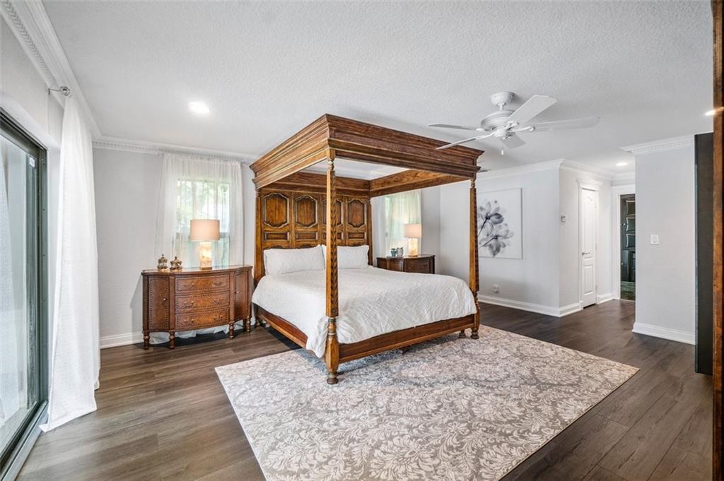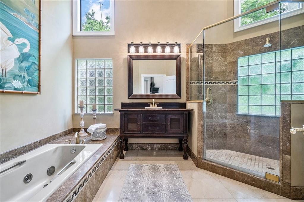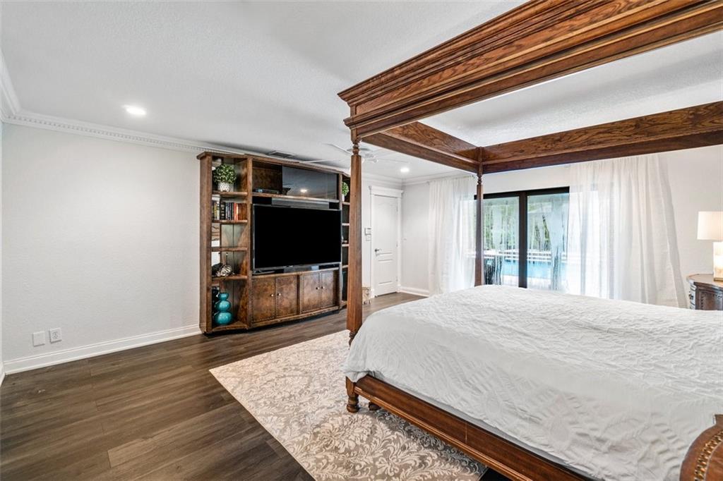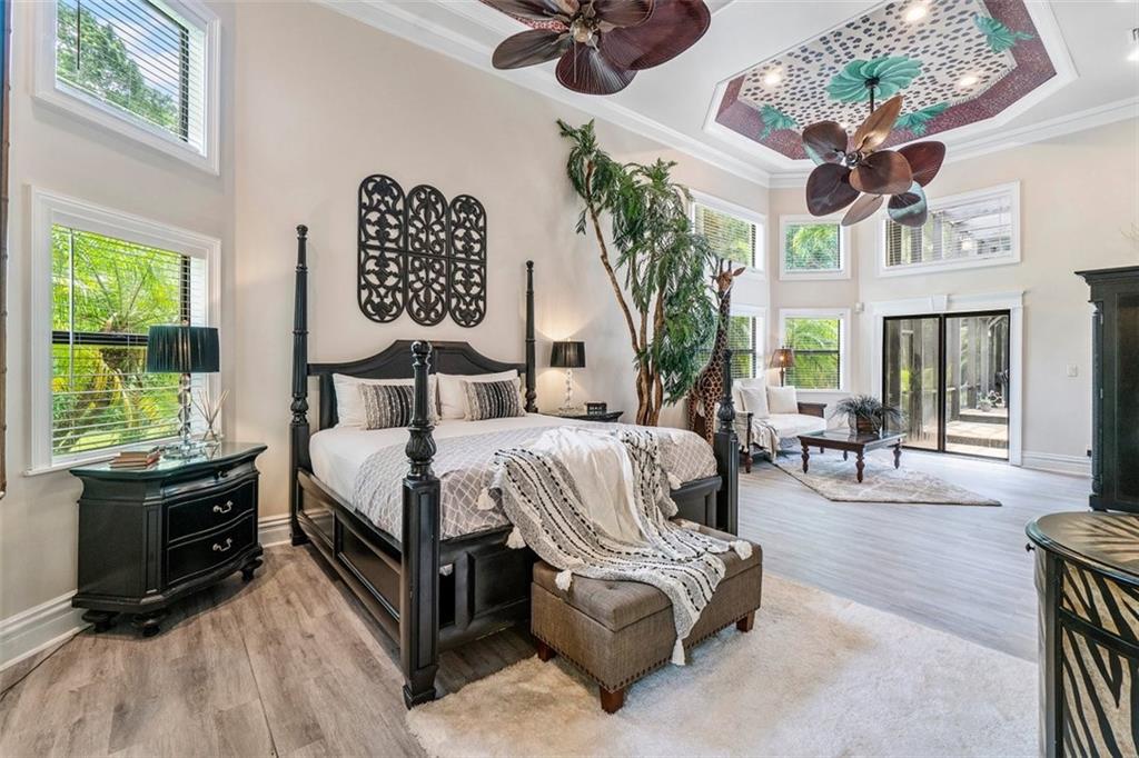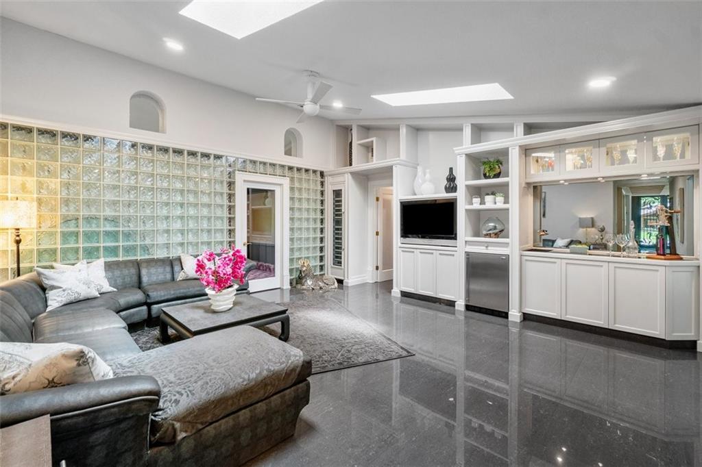 Simply a beautifully luxurious residence! The designer, with a critical eye, incorporated the finest materials & finishes when creating this dramatic yet light/airy home. Newer epicurean kitchen with crisp white cabinets and top-shelf appliances! 2 spacious master suites (one with a kitchenette) both with spa-like bathrooms make it perfect for a multi-generation household. Breathtaking outdoor spaces feature an oversize pool with a water/fire feature & a full-service summer kitchen. Sited on an impressive corner lot with a sprawling lawn, manicured landscape, & a jaw-dropping double door entry add to the splendor of the home. Designed to ensure residents & guests have their own private space. Offerings: most bedrooms have ensuite bathrooms, impact windows/doors, movie theater.