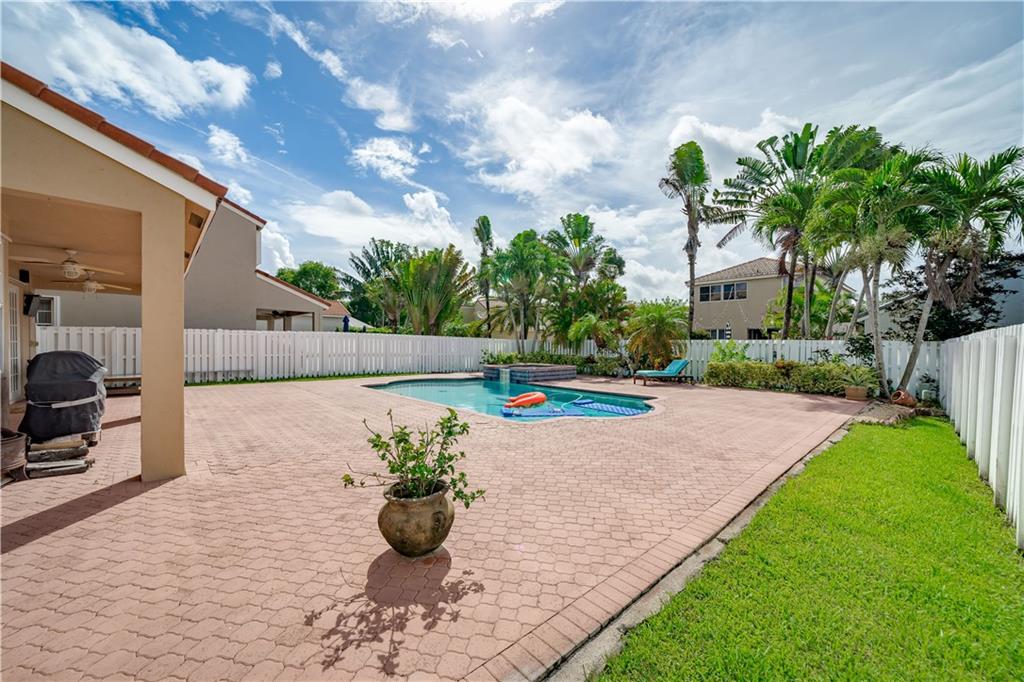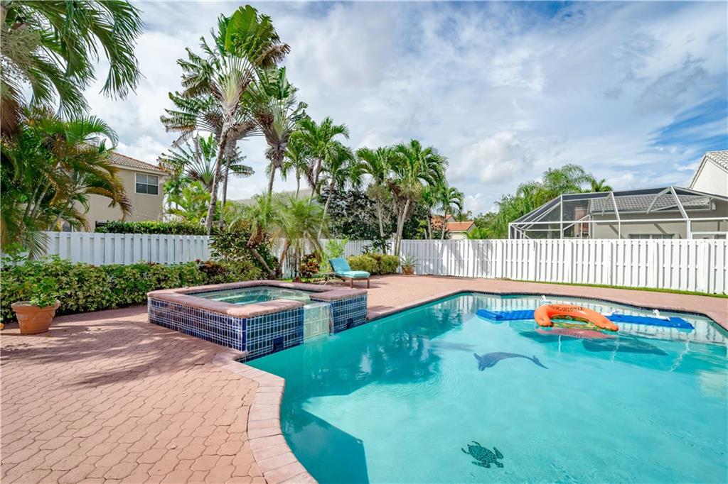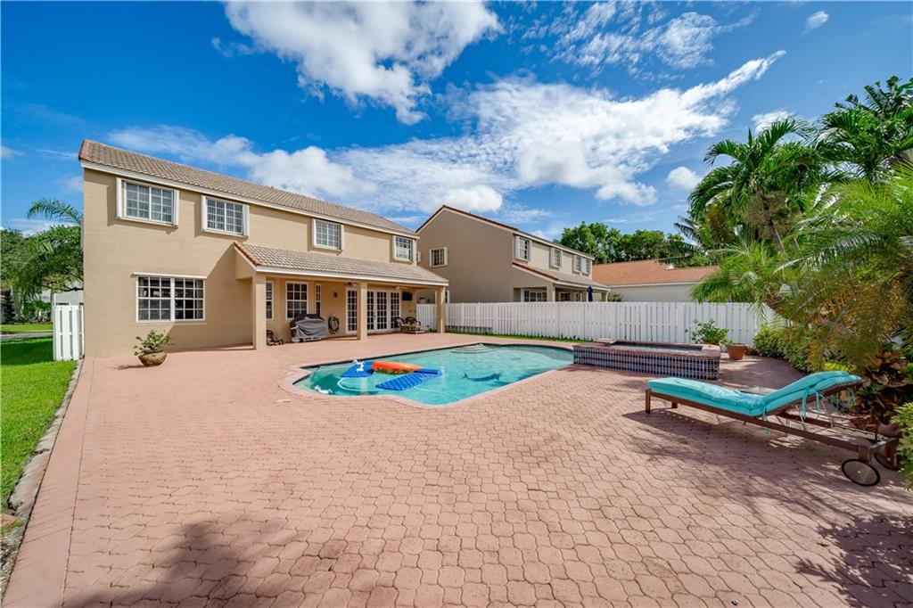 Welcome home to this one of a kind gorgeous home located in sought after community of The Falls in Weston.This magnificent hidden gem is perfectly & privately located in a cul de sac just steps away to the community park and clubhouse in one of the largest lots in the community.Among the many upgrades, it features new & stylish vinyl floors throughout both floors, just painted in & out, accordion shutters, hurricane proof garage door, amazing pool with safety children's fence, jacuzzi & new pool heater, ceiling fans all bedrooms and family room, french doors to backyard, crown moldings in dinning room, kitchen & family room, wood frame accents-dinning room, living room & volume ceiling windows, newer appliances & AC unit.Close to major transportation & Sawgrass Mills Mall.A+ Rated Schools.