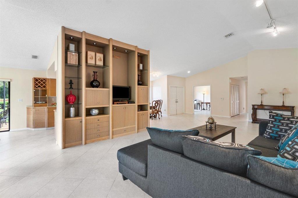 This home has fantastic natural light, vaulted ceilings, and is super spacious with a huge great room overlooking a large green space of the 5th hole on the golf course. It has a large lot on a quite cul de sac w/ 3 bedrooms, 2 baths, all tile throughout, 1 private screened in covered patio, and another open screened in patio both w/ beautiful golf course views. The roof is 2006, A/C & water heater are 2017, & the 2 car garage has been converted to a 1.5 but could be converted back. Boca Woods is a 24 hour manned gated community and offers two 18 hole golf courses, driving range, tennis & fitness center, pool, pickle ball, dining, & much more. It has a Mandatory Membership of $65,000 and $30,000 refundable when you sell, dues $16,215 +tax/yr - minimum in dining room $1,000 +tax/yr.