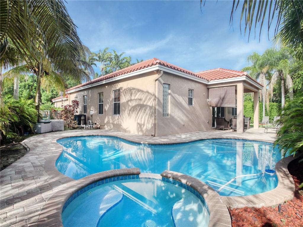 4 BEDROOM 2.5 BATH CLOVER MODEL WITH 2 CAR GARAGE,TILE FLOORS AND REAL WOOD FLOORING IN BEDROOMS,OPEN KITCHEN WITH LARGE GRANITE ISLAND,42 IN. WOOD CABINETRY AND TOP OF LINE APPLIANCES ,BRAND NEW S-TILE ROOF ONLY FEW MONTHS OLD,LARGE PIE SHAPED LOT WITH HEATED SALT WATER POOL AND SPA,ALL DECKING AROUND POOL ARE PAVERS RECENTLY SEALED,SITUATED ON A CUL-DE SAC STREET AND ONE OF THE LARGEST LOTS .COME AND SEE THIS BEAUTIFUL HOME YOU WONT BE DISSAPOINTED