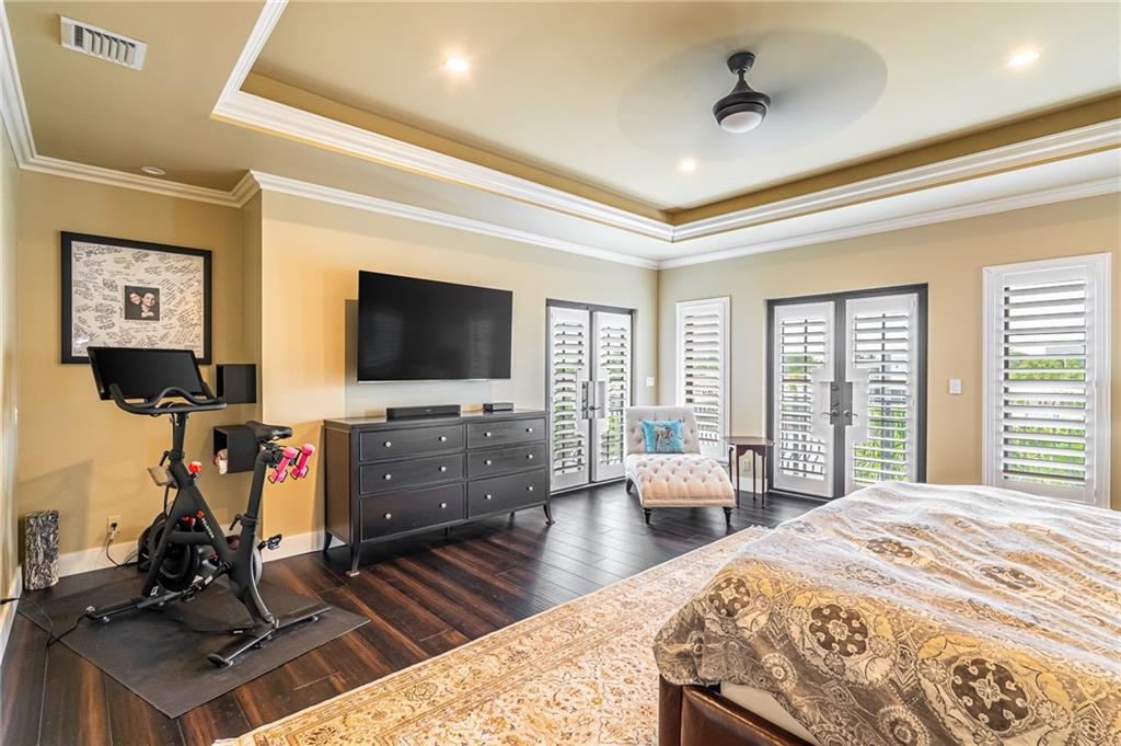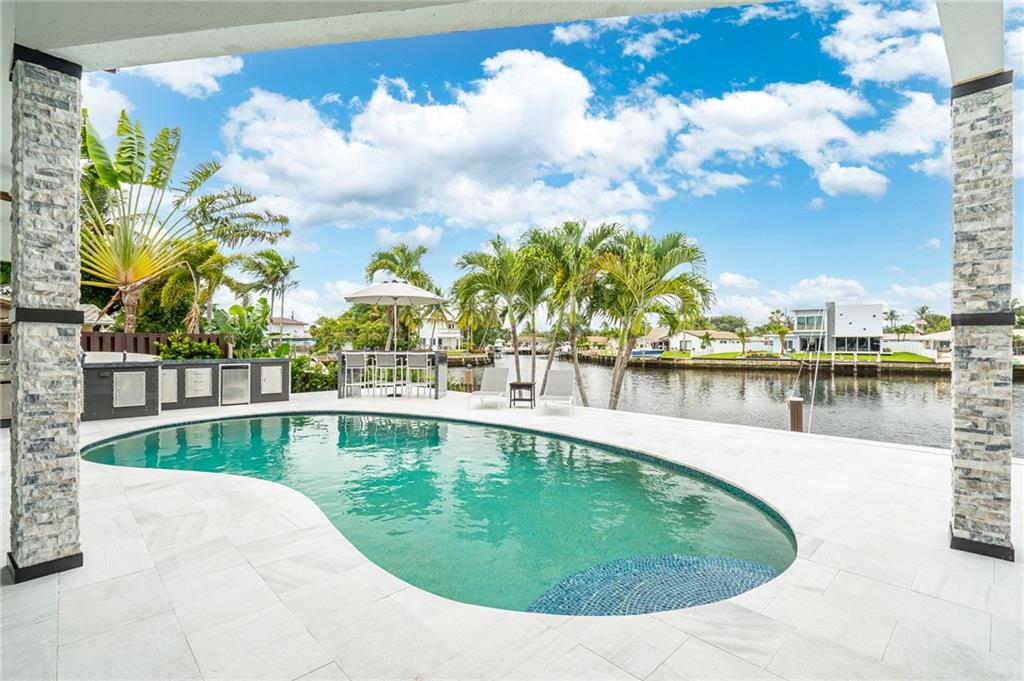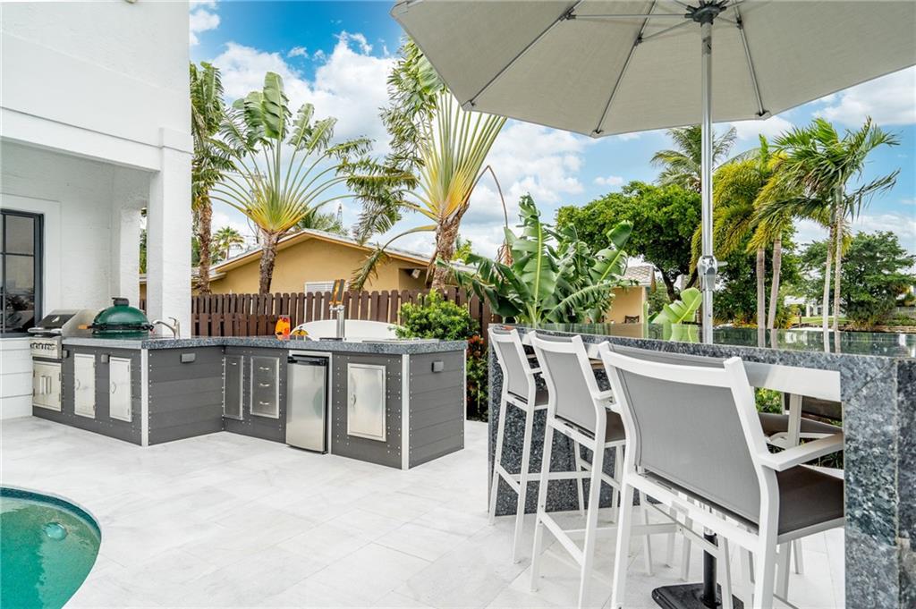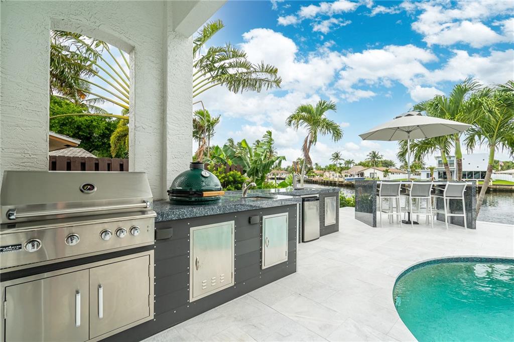 This absolutely stunning home features an incredible amount of space for the East side of town! HUGE Main bedroom suite features dual walk in closets, sitting area, massive bath with dual vanities and private waterfront balcony! Outdoor entertainers dream was just upgraded with a NEW outdoor kitchen complete with dual kegerator, grill with lifetime warranty and built-in big green egg! Paver patio was almost doubled in size for extra space and you have 80ft of water-frontage on extra WIDE intersecting canals. It's truly a boaters dream and if you like natural light, this home is perfect! Gorgeous sunrises fill the main living area, bedrooms and kitchen with great lighting that dances on volume ceilings! Homeowner has already purchased sliding wall of windows for kitchen!