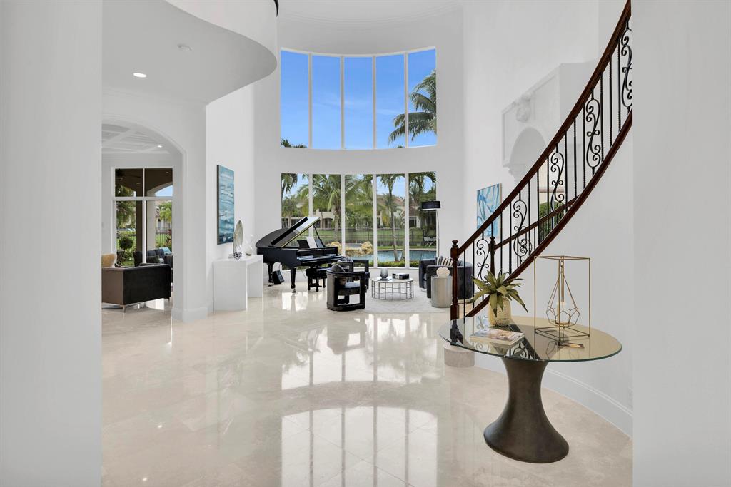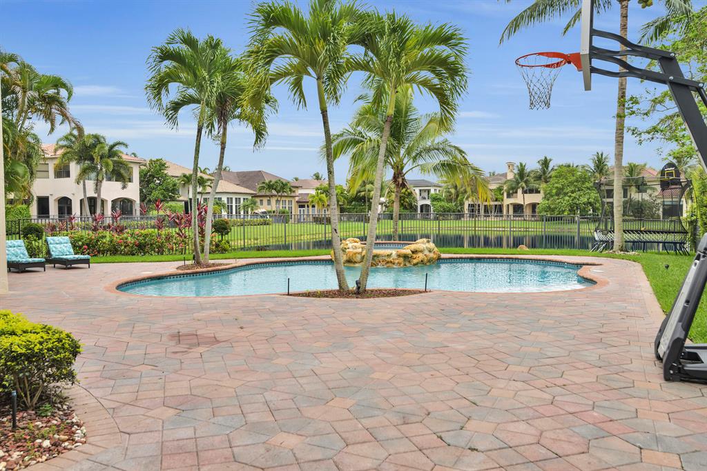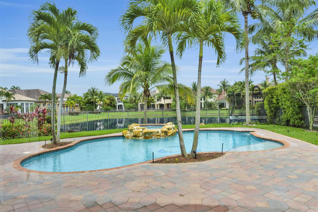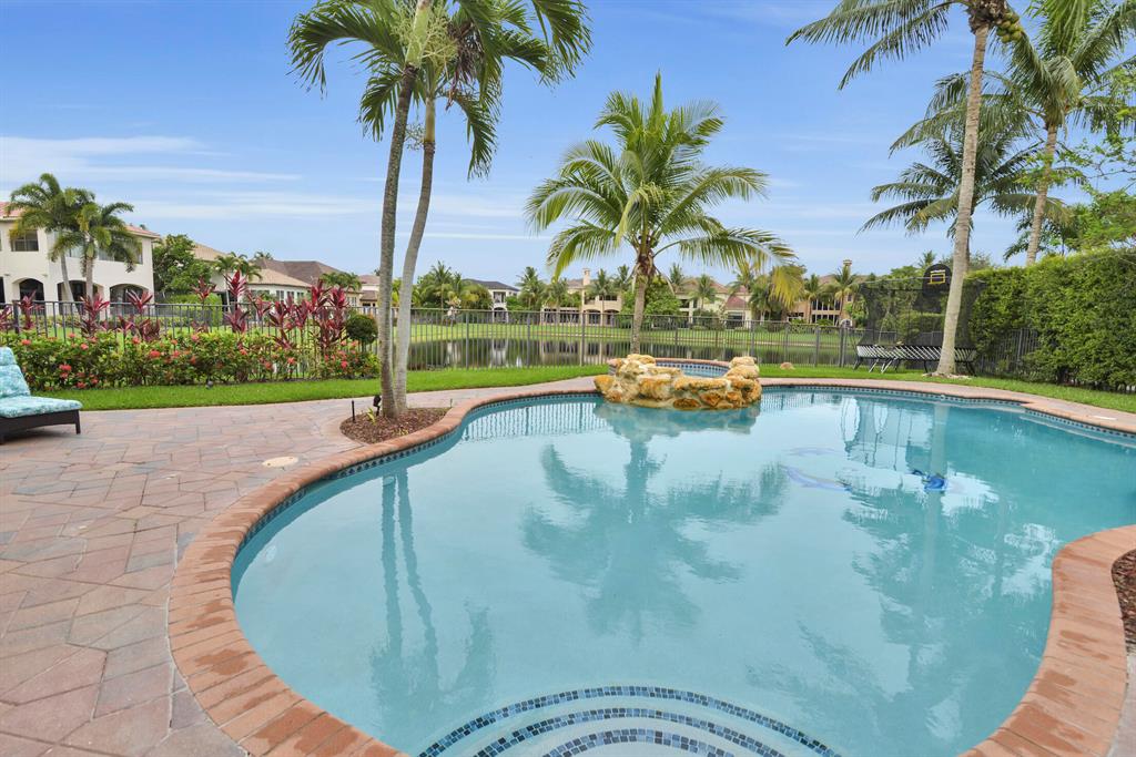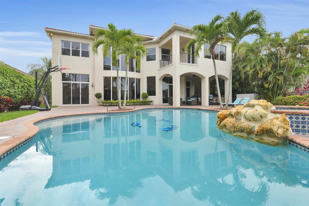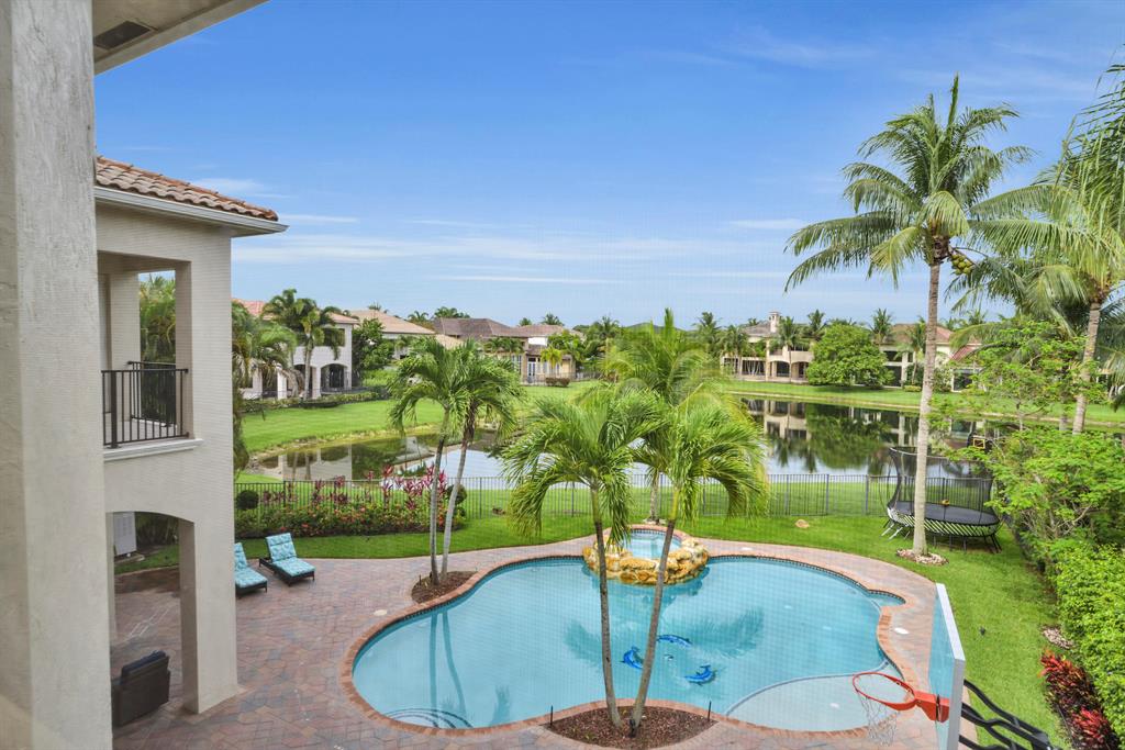 Elegance and sophistication meet at this magnificent transitional estate situated on an oversized cul de sac lake lot in the Oaks at Boca Raton. Incredible long lake views from the palatial windows. Featuring 6 bedrooms plus an office plus a professional media room that boasts 11 seats. This home must be seen to be appreciated. Marble floors, custom window treatments, light fixtures, built ins, a whole house generator, circular driveway, custom iron front doors and more. The oversized pool spa and waterfall create a tropical paradise with room for a basketball court and room to play and entertain outdoors. Live the ultimate South Florida lifestyle with the covered patio, walk out balcony from the Master and Loft. Walk to the clubhouse which features exclusive country club style living.