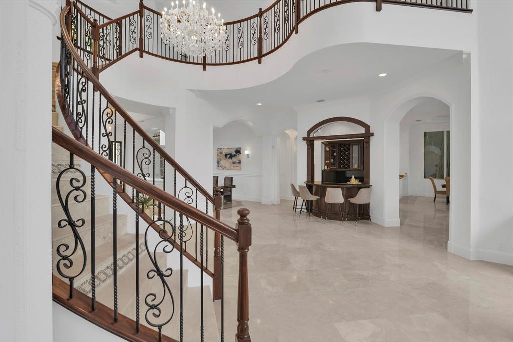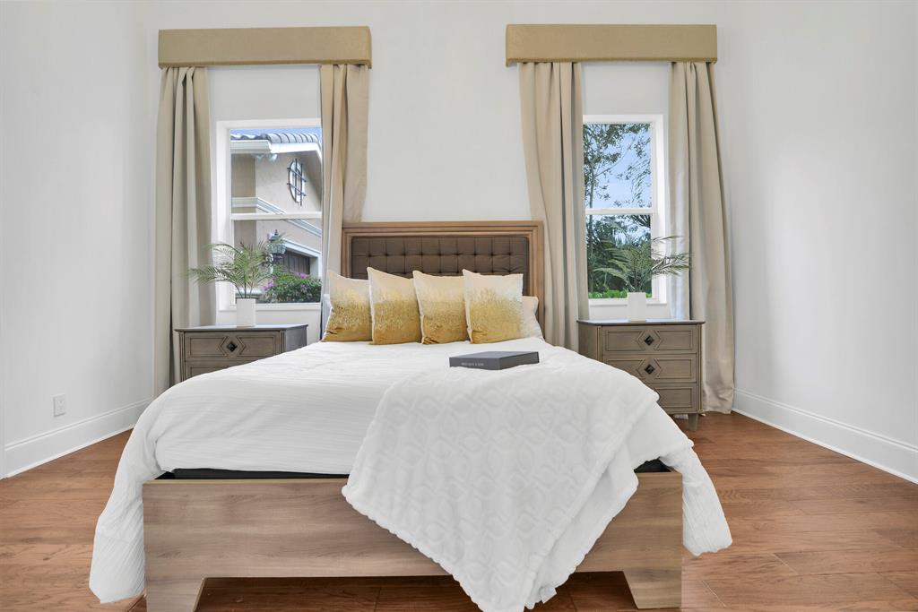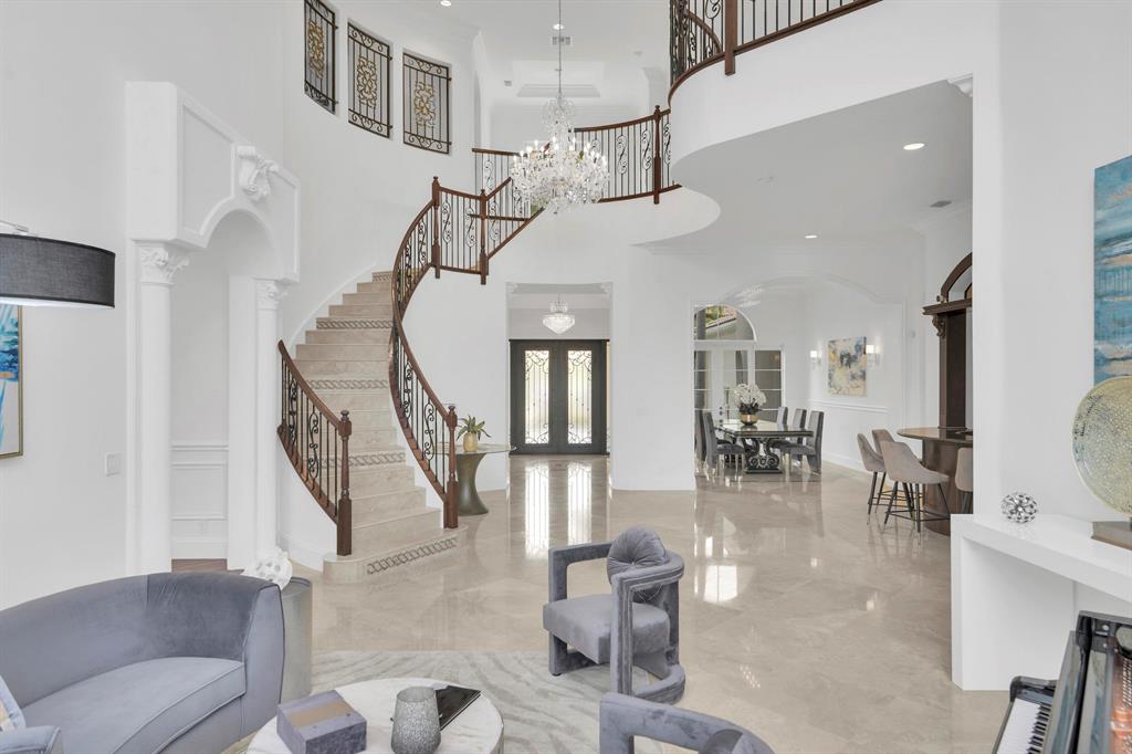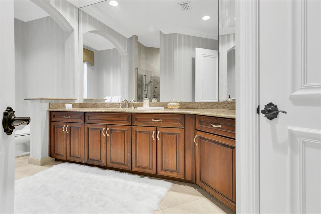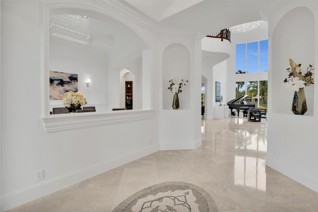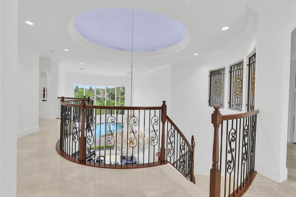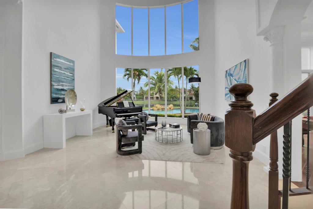 Elegance and sophistication meet at this magnificent transitional estate situated on an oversized cul de sac lake lot in the Oaks at Boca Raton. Incredible long lake views from the palatial windows. Featuring 6 bedrooms plus an office plus a professional media room that boasts 11 seats. This home must be seen to be appreciated. Marble floors, custom window treatments, light fixtures, built ins, a whole house generator, circular driveway, custom iron front doors and more. The oversized pool spa and waterfall create a tropical paradise with room for a basketball court and room to play and entertain outdoors. Live the ultimate South Florida lifestyle with the covered patio, walk out balcony from the Master and Loft. Walk to the clubhouse which features exclusive country club style living.