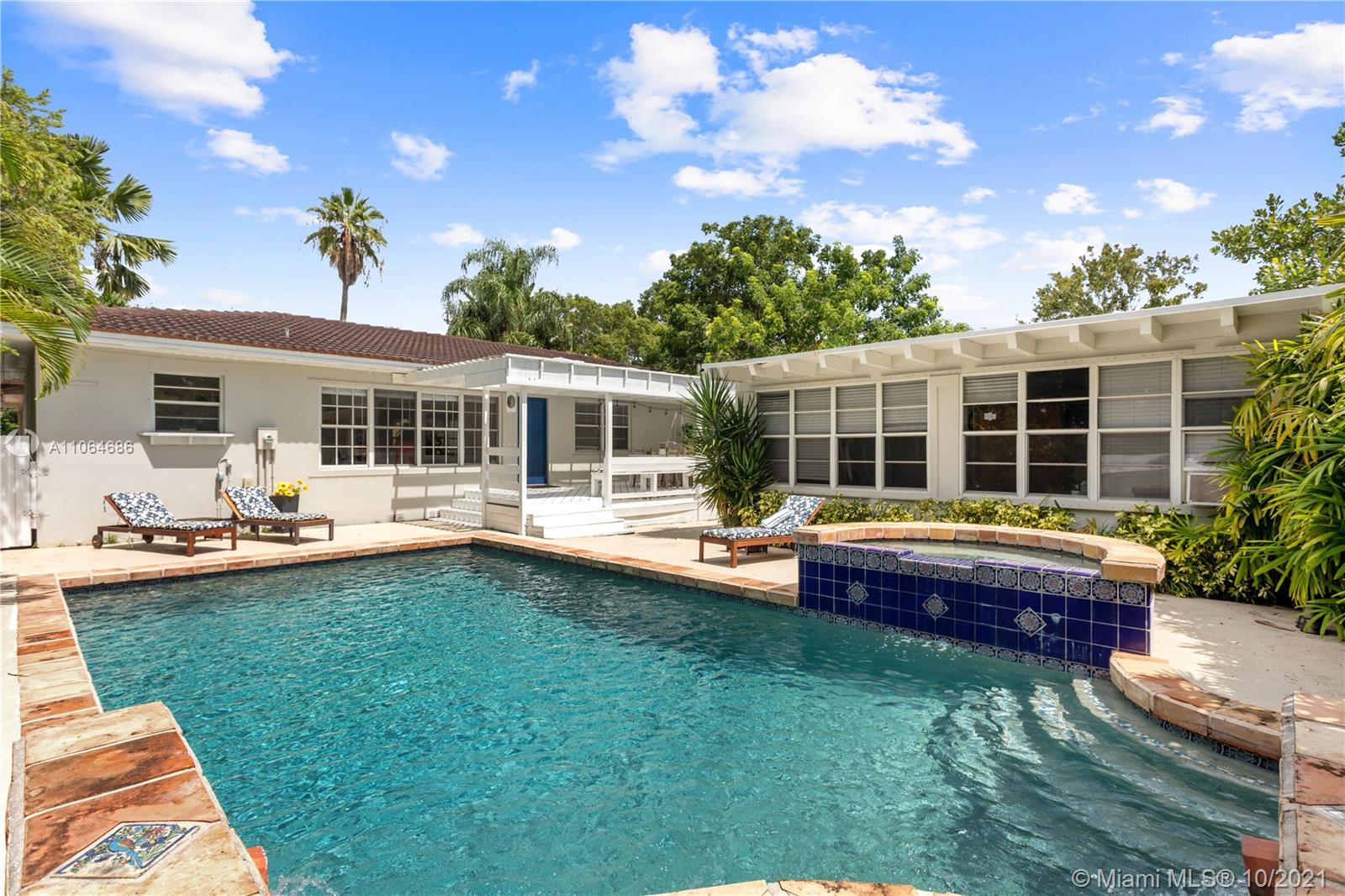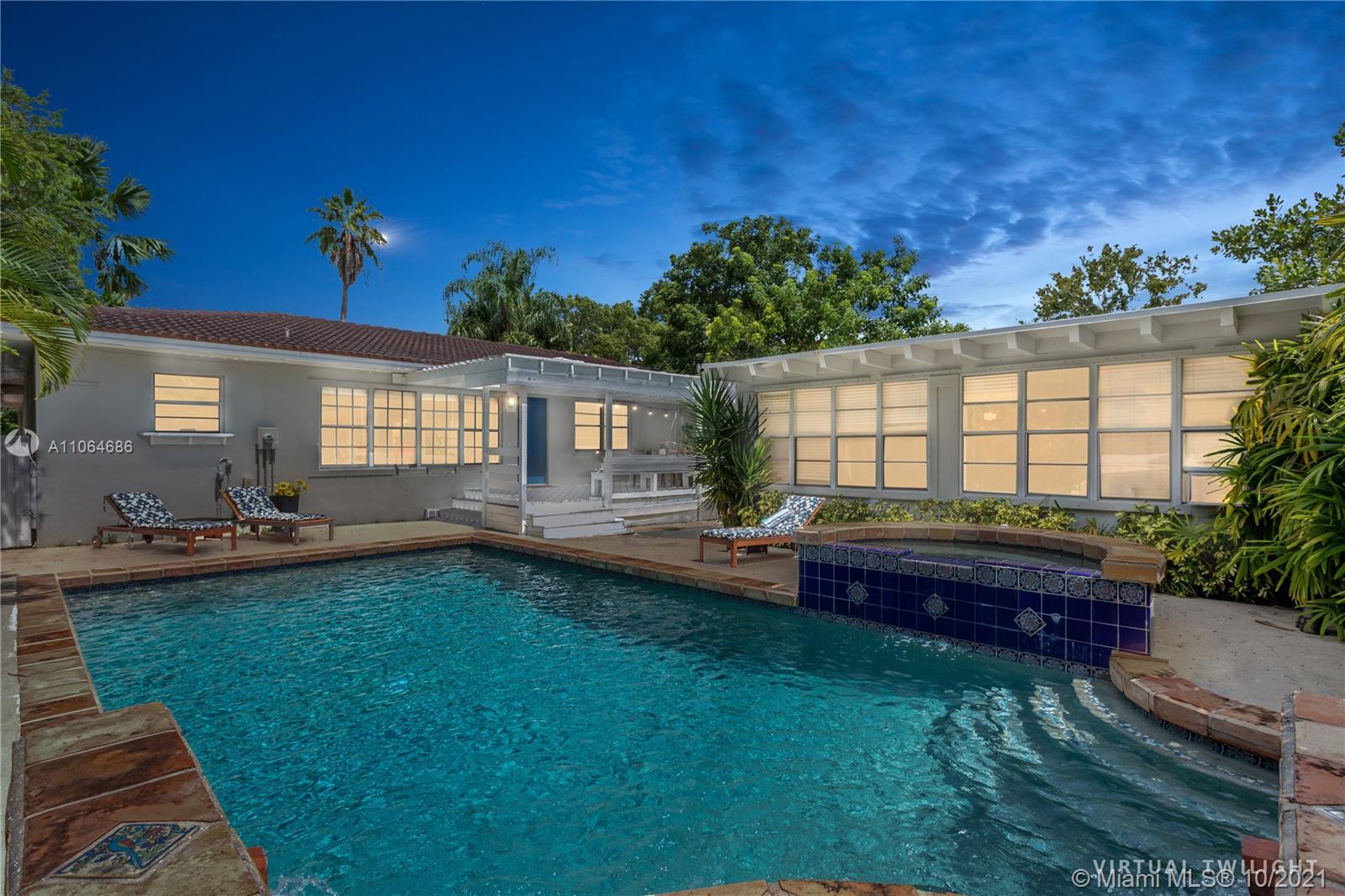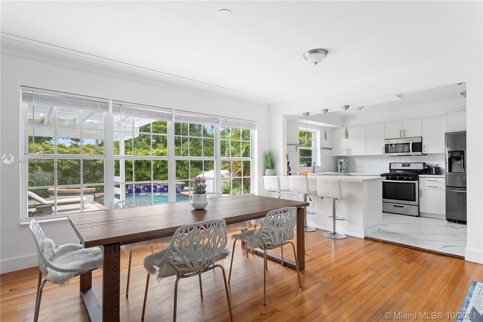 Very bright and welcoming Pool Home in the Center of Miami Shores. Nicely updated kitchen and bathrooms. The main House has 4 bed/ 3 bath PLUS the separate guest house w 1 bed + DEN/ 1 bath. Hardwood floors thru out. Open kitchen w/ nice view of the pool. The perfect house for entertaining and/or to raise a family . Tropical private backyard w/heated pool, jacuzzi and large wooden porch makes this the perfect oasis right around the corner from the Miami Shores Golf Course, private and Public schools and Miami Shores Soccer/ Sportspark. Downtown Miami Shores and nearby Biscayne Blvd offer convenient shopping options….. Fully furnished and Turnkey Very large and inviting outside Porch with Pizza oven and BBQ