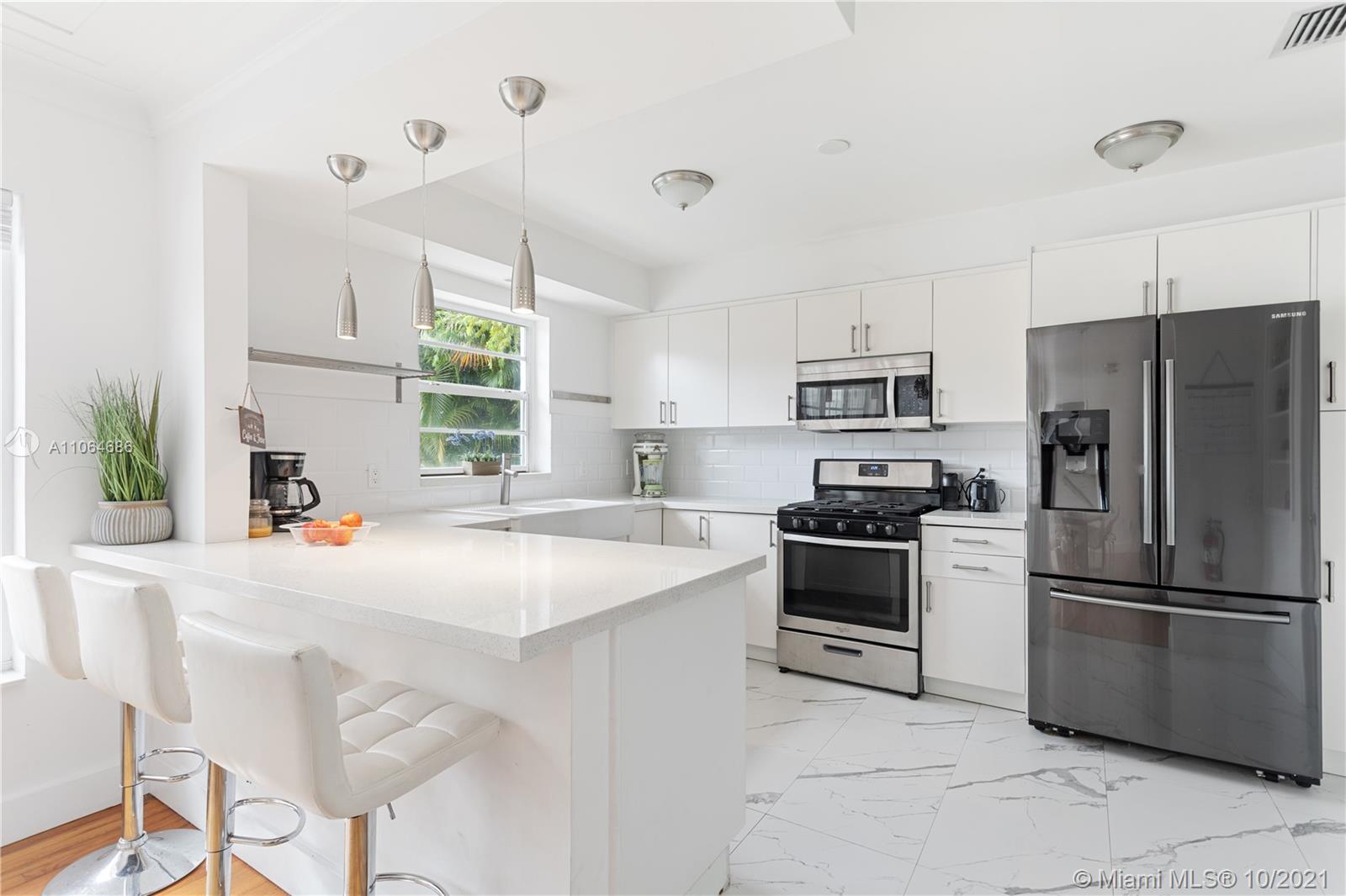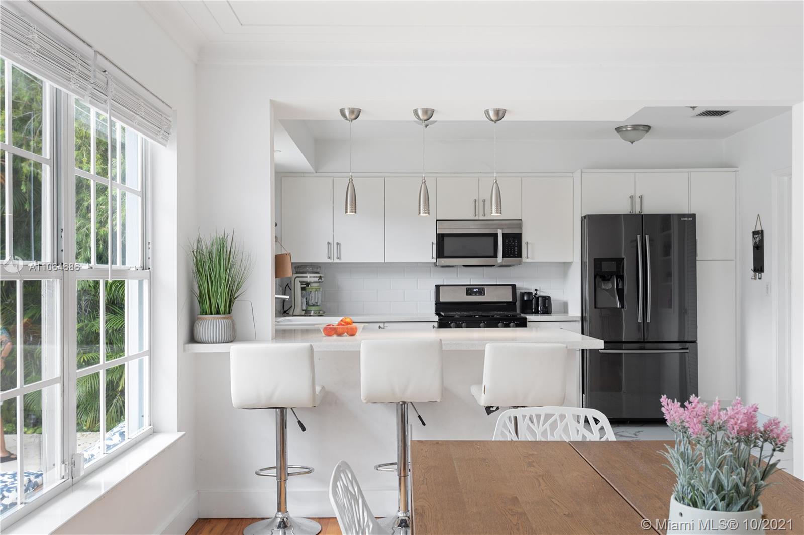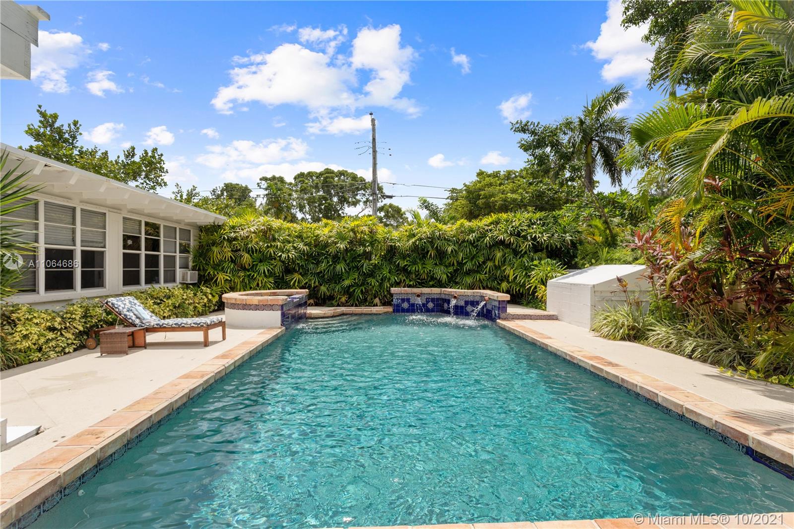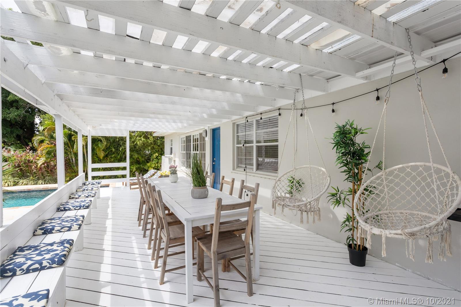 Very bright and welcoming Pool Home in the Center of Miami Shores. Nicely updated kitchen and bathrooms. The main House has 4 bed/ 3 bath PLUS the separate guest house w 1 bed + DEN/ 1 bath. Hardwood floors thru out. Open kitchen w/ nice view of the pool. The perfect house for entertaining and/or to raise a family . Tropical private backyard w/heated pool, jacuzzi and large wooden porch makes this the perfect oasis right around the corner from the Miami Shores Golf Course, private and Public schools and Miami Shores Soccer/ Sportspark. Downtown Miami Shores and nearby Biscayne Blvd offer convenient shopping options….. Fully furnished and Turnkey Very large and inviting outside Porch with Pizza oven and BBQ