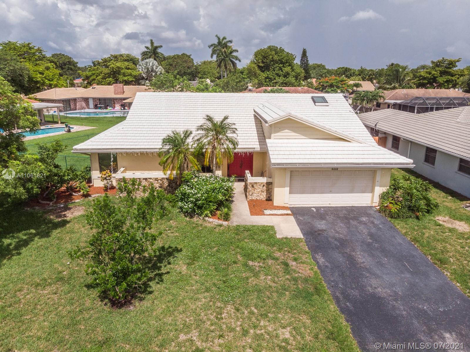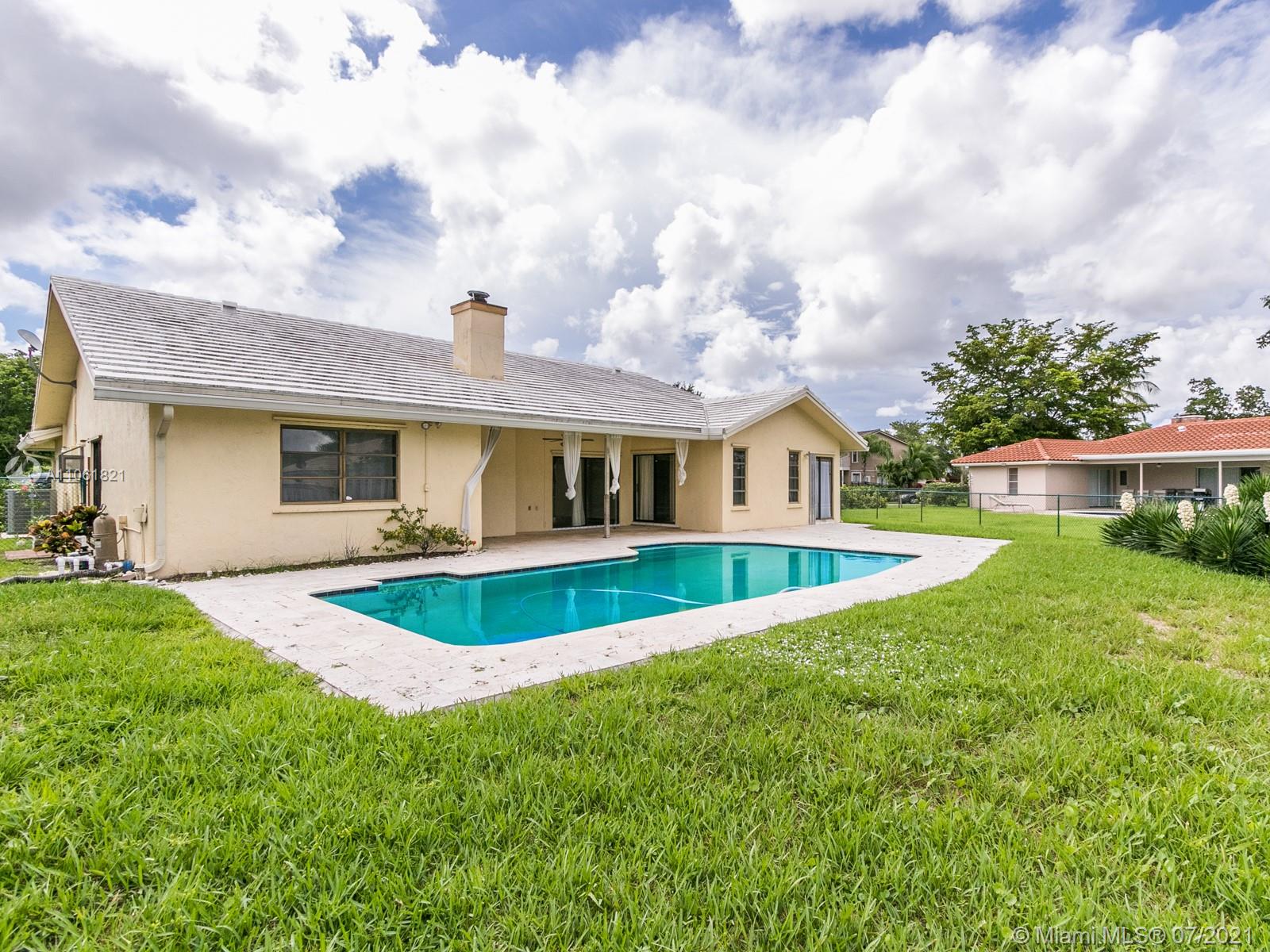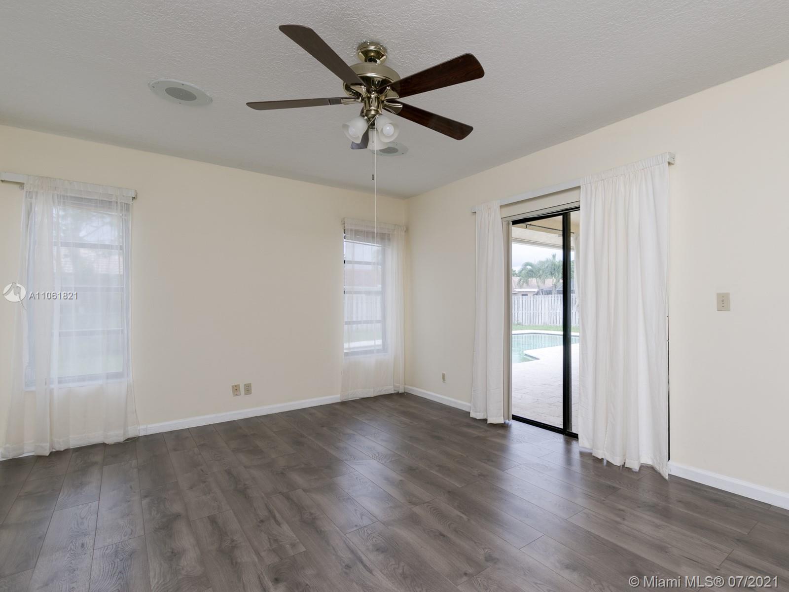 LIVE THE SOUTH FLORIDA DREAM! Rarely available 2,200+ living sq. ft. 4 bedroom 2 full bathroom pool home in heart of Coral Springs! Features large vaulted smooth ceilings (no popcorn) upon entering with tile and NEW wood-like vinyl flooring throughout. Custom kitchen with Corian counter tops, island, and newer S.S. appliances. Master bedroom overlooks patio and pool, features walk-in closet with custom built-ins. Exterior features fenced in backyard with an abundance of yard space and NEWLY extended patio surrounding pool with travertine tile, great for entertainment! COMPLETE hurricane protection for insurance credits. NEW A/C, NEW water heater, NEW pool pump, interior fleshly painted, ROOF replaced 2009, and auto sprinkler system.