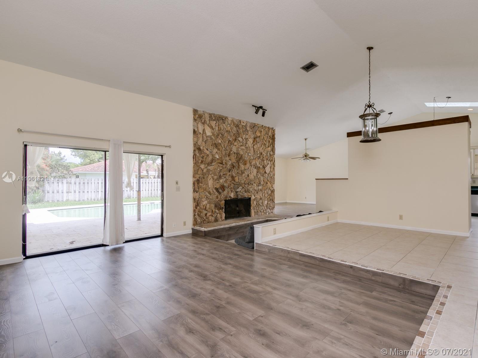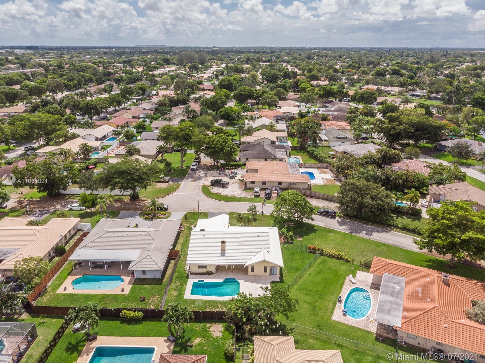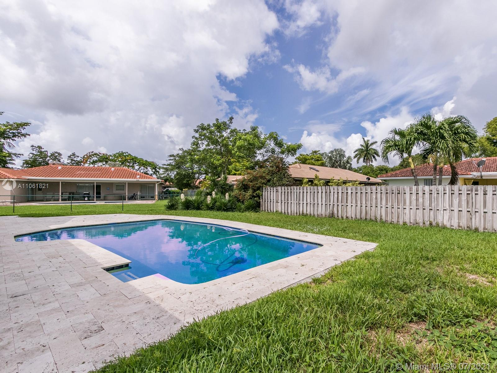 LIVE THE SOUTH FLORIDA DREAM! Rarely available 2,200+ living sq. ft. 4 bedroom 2 full bathroom pool home in heart of Coral Springs! Features large vaulted smooth ceilings (no popcorn) upon entering with tile and NEW wood-like vinyl flooring throughout. Custom kitchen with Corian counter tops, island, and newer S.S. appliances. Master bedroom overlooks patio and pool, features walk-in closet with custom built-ins. Exterior features fenced in backyard with an abundance of yard space and NEWLY extended patio surrounding pool with travertine tile, great for entertainment! COMPLETE hurricane protection for insurance credits. NEW A/C, NEW water heater, NEW pool pump, interior fleshly painted, ROOF replaced 2009, and auto sprinkler system.