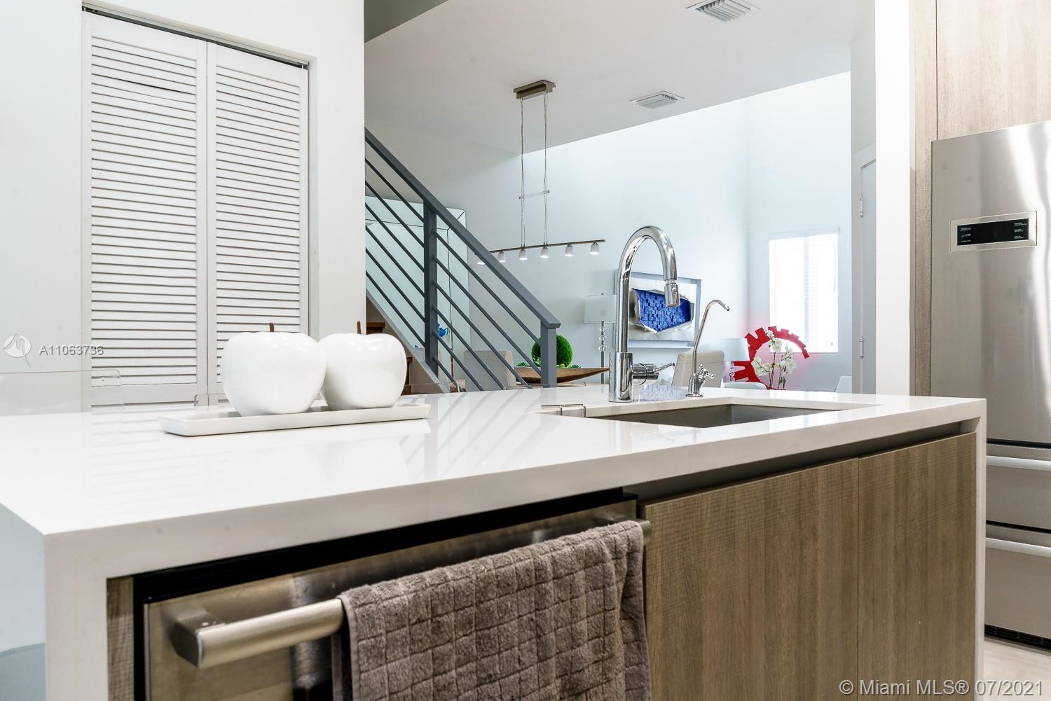 Breathtaking Luxury & Smart Technology TH in Neovita at Doral. Located in a corner. It has 3 bedrooms & 3 bathrooms (1 bedroom downstairs with a full bathroom). Amazing future: gourmet kitchen with European cabinetry & top of the line Bosh appliances, quartz counter-top, European cabinetry bathroom with Roman top, bidet & frameless glass shower in the master bath. 24x24 porcelain tile floor in the first floor and in the 3 bathrooms. Bamboo floors in the entire 2nd floor except the bathrooms. 100% concrete outside and inside, energy efficient water, heater, advance cable & phone wiring. Living room with double ceiling. Impact windows. Full patio. Basic cable, wi-fi (fiber optics cabling-up to 1 gbps) & alarm are provided by HOA. Club house with full gym and Pool. Gated community.