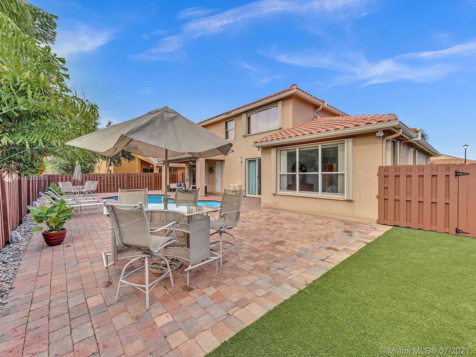 Beautiful 5 bedrooms, 3.5 baths, 3 car garage, 2 story home, with solar-heated pool, in desirable guard gated Encantada. Features include Accordion Shutters, New Water heater, New A/C Unit. Family room, beautiful kitchen with granite countertops, New stainless steel appliances, pantry, and laundry room with New washer/dryer. Spacious Living Room and Dining Room. The Master bedroom on the 1st floor, 2 closets. Master bathroom with his/her sinks, roman tub, and shower. Upstairs 4 bedrooms, 2 bathrooms, newly remodeled guest bathroom, loft area great for office or sitting area, and a Jack and Jill bathroom. Covered Patio area, extended pavers in the backyard, and walkway, making this the perfect entertaining oasis. Clubhouse amenities. Showings begin on Sat. July 10th OPEN HOUSE 1pm - 3pm.
