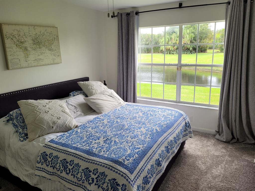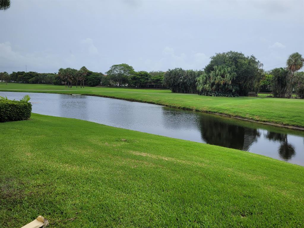Stylish townhome with direct golf course and lake views. Spacious master on the ground floor with double door entry. The living and dining area boast a two story ceiling height with large windows allowing the beautiful Eastern exposure.. The kitchen has newer appliances and granite counters. Tiled floors are in all the main living spaces except the bedrooms. All the bedrooms have new beautiful carpet. There is a downstairs powder room for guests. The second story has two more spacious bedrooms with large closets. There is also a redone guest bathroom. Garage and driveway, giving ample parking. Minutes to shopping and the beach. None membership equity. Community pool. Low fees. Enjoy living on the golf course, but no enormous upfront fee