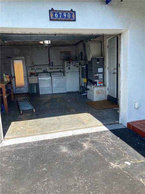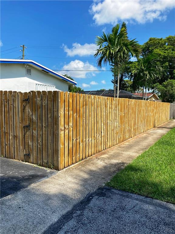 3/2 with garage/ large fenced-in yard and circular driveway. Move-in ready. Freshly painted, updated kitchen, almost new roof, AC, water heater, bathrooms. Tile thru-out Accordion shutters and generator hook up . All stainless steel appliances with oversized refrigerator and microwave. The kitchen has great lighting plus tons of cabinet space with pantry and silo stone counters. Dining room area right off the kitchen. Large living room to entertain. Master Bedroom with two closets-his and hers! All tiled master shower with rain shower and niche. Also, guest room has next to it a nice bath and shower with great lighting and style, Accordion shutters. The garage has AC plus a workbench. Large fenced-in yard--Build a pool/play area or have boat-double gate fence. No Hoa.
