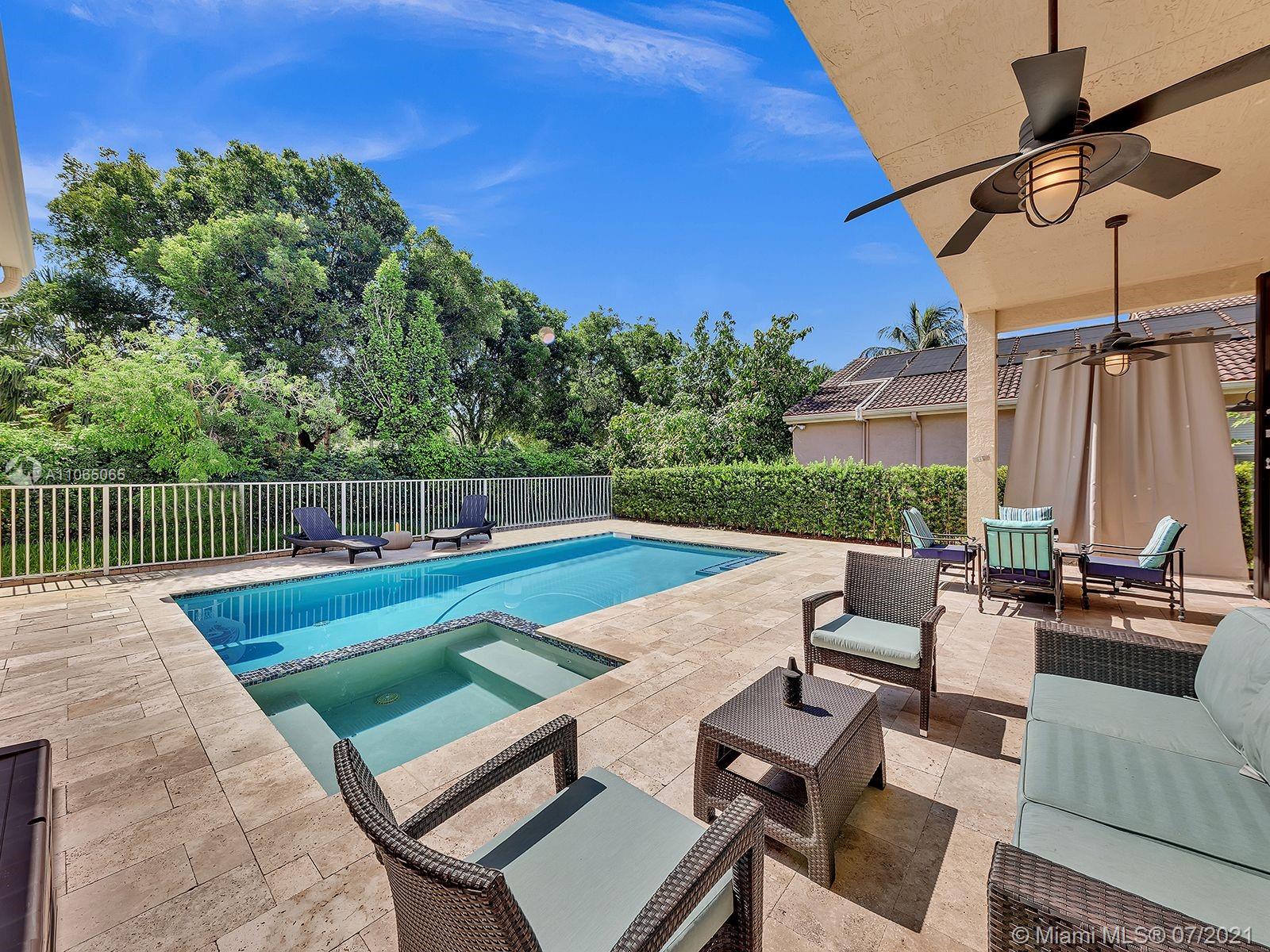 Envision living in this beautiful, bright & spacious home full of upgrades! This Isabela floorplan is one of the only two floor plans built within the entire community boasting separate bathrooms in the Master Suite with a connecting shower. Newly remodeled kitchen with a stunning & expanded butcher block island boasting plenty of cabinet storage, a built-in seating bench in the breakfast area, and a backyard with an expansive covered terrace and beautiful travertine pavers around the new saltwater heated swimming pool and spa. Enjoy an abundance of amenities in the first-rate clubhouse with a fully-equipped fitness center, tennis courts, & so much more. **First showings will take place July 10th & July 11th from 12-1:30pm. Offers below the offer price will NOT be considered.**