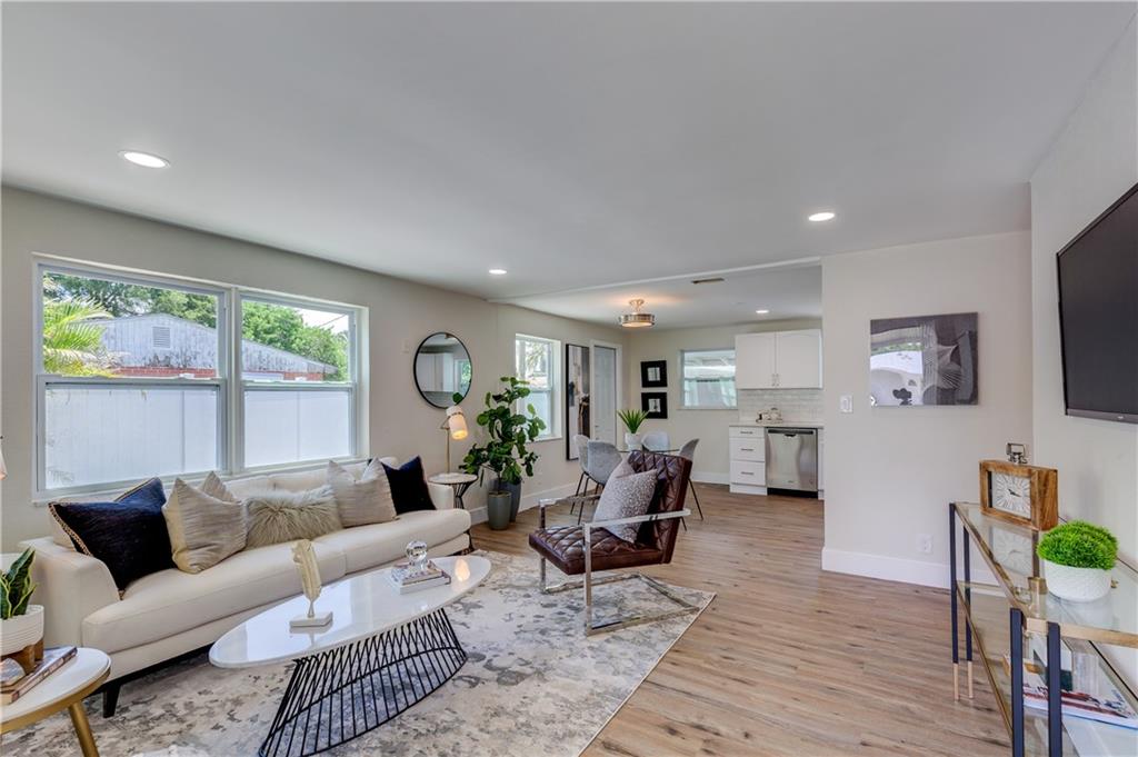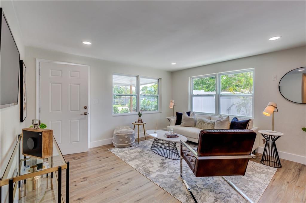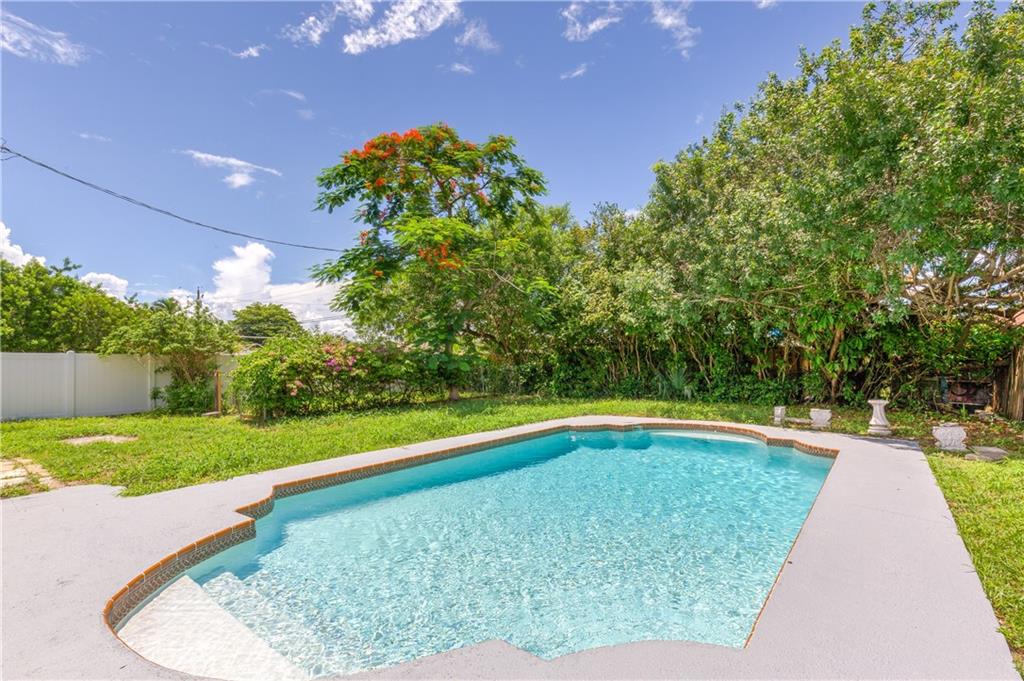 Beautifully renovated, big backyard and pool, all new for you: brand new roof and hurricane impact windows, new kitchen and fully remodeled bathroom, all new vinyl plank flooring, new LED ceiling lighting, brand new AC system, brand new appliances, new doors and door hardware, full clusia privacy hedges installed with new sod, new PVC fencing, new pool pump and new sprinkler system, fresh new asphalt driveway, new travertine tiled covered front patio with new wood posts. This 3 Bedroom, 1 Bathroom home is ready for years and years to come.