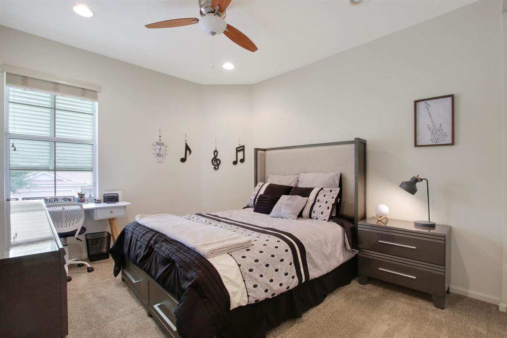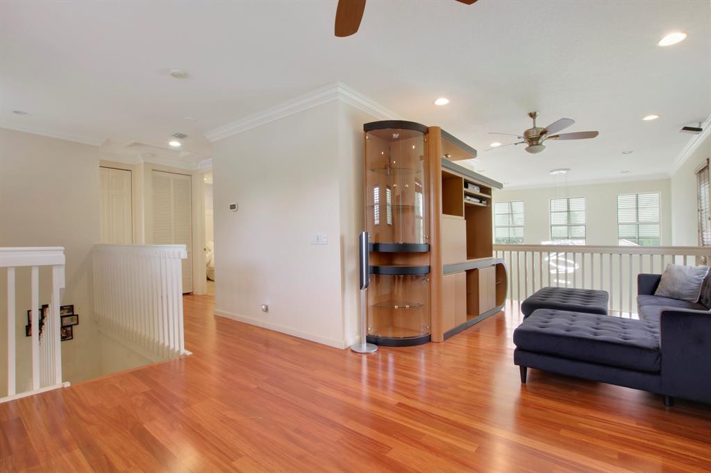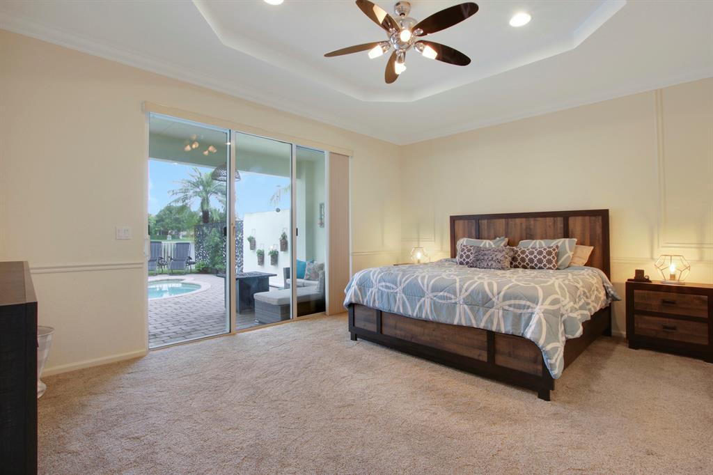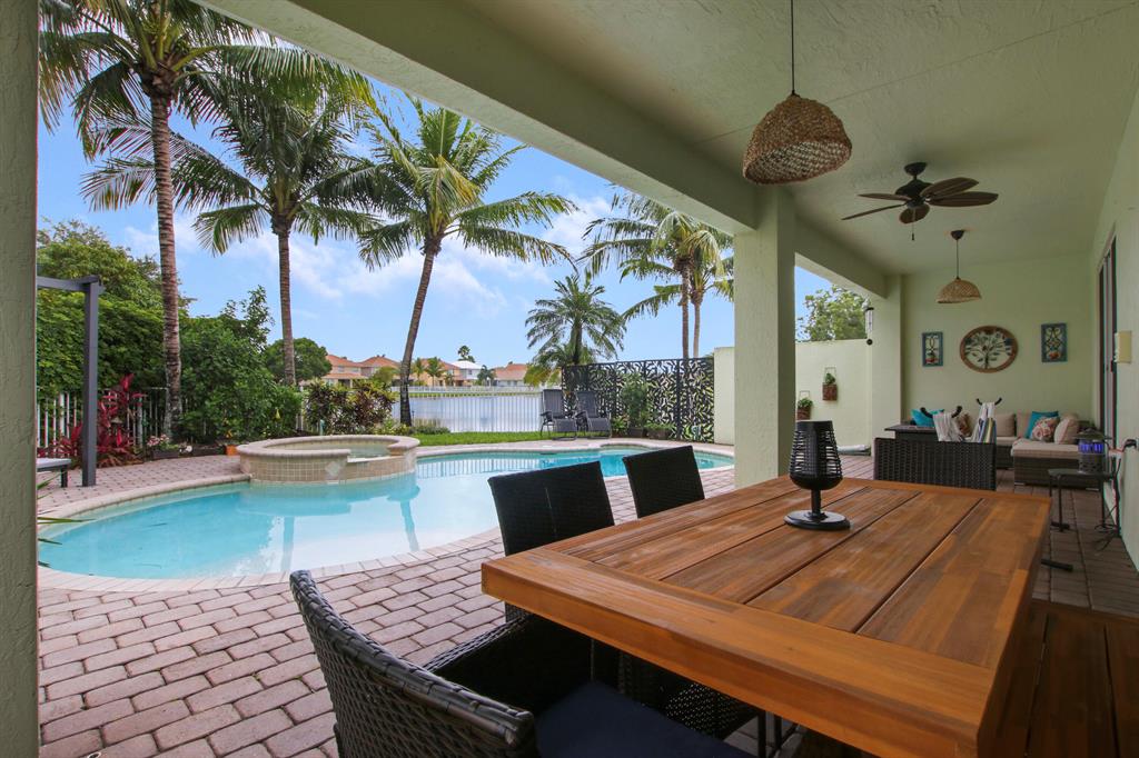 Welcome home to this gorgeous former model home in one of West Palm Beach's best neighborhoods - Palm Beach Plantation! This home is sure to impress and features 3 bedrooms, 2 bathrooms with a 2 car garage. It is located on an oversized pie shaped lot with the best lake views in the community. The oasis outside includes a heated pool with spa, custom lighting and an extended covered patio that is perfect for alfresco dining and entertaining. The first floor master suite is complete with coffered ceilings, custom walk in closets, dual sinks, garden tub and a separate shower. Large sliders welcome you to the covered patio & pool area where you can enjoy your morning coffee. The second floor is complete with a den/loft area that overlooks the downstairs formal dining area and a custom