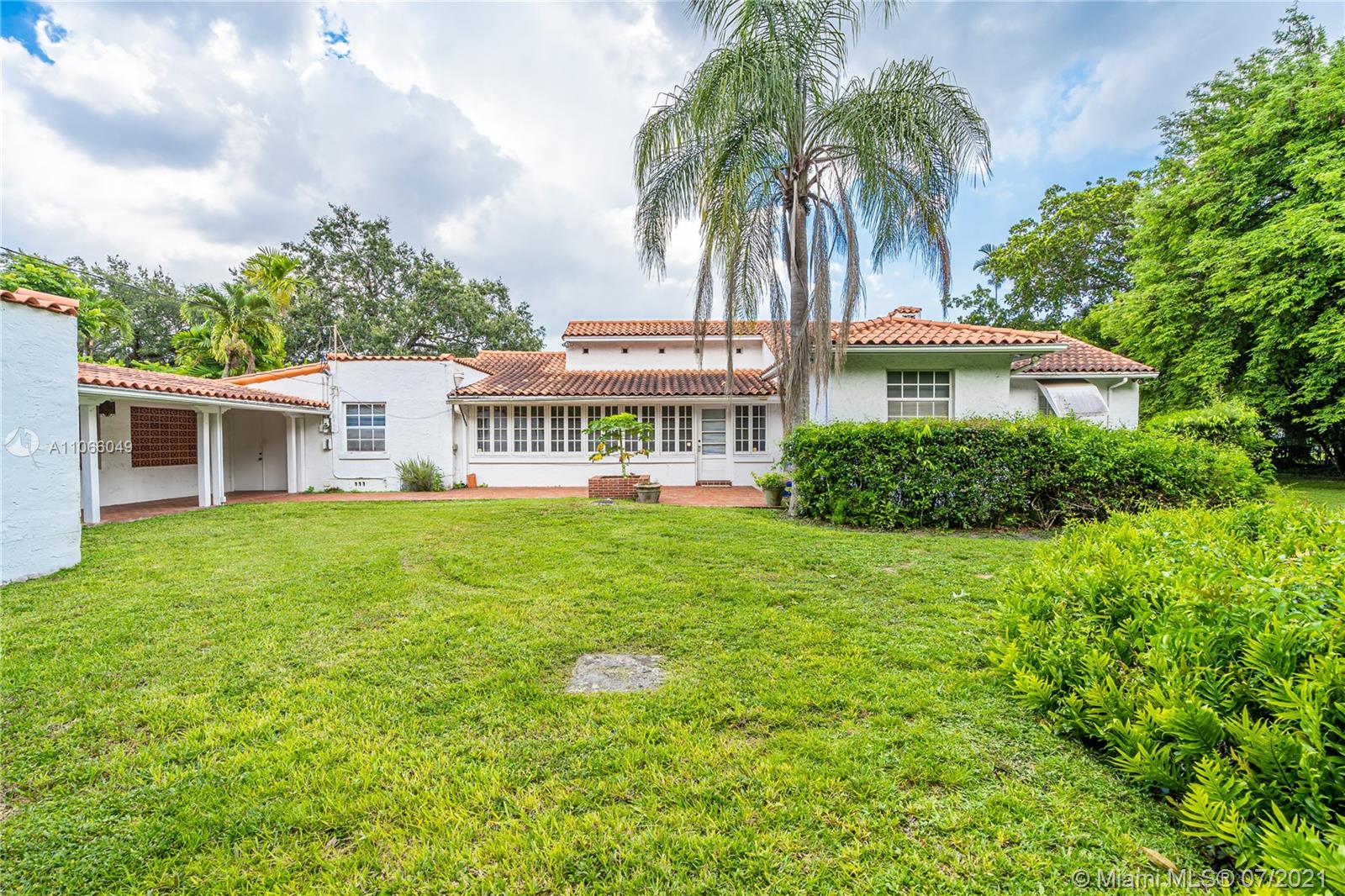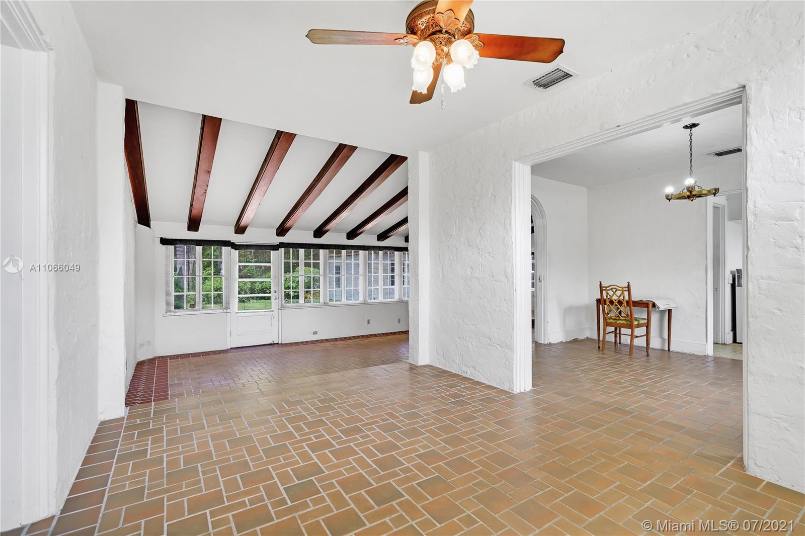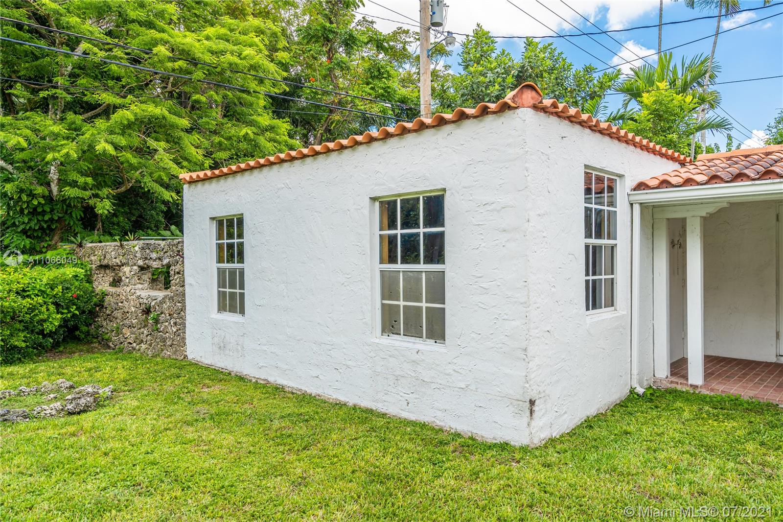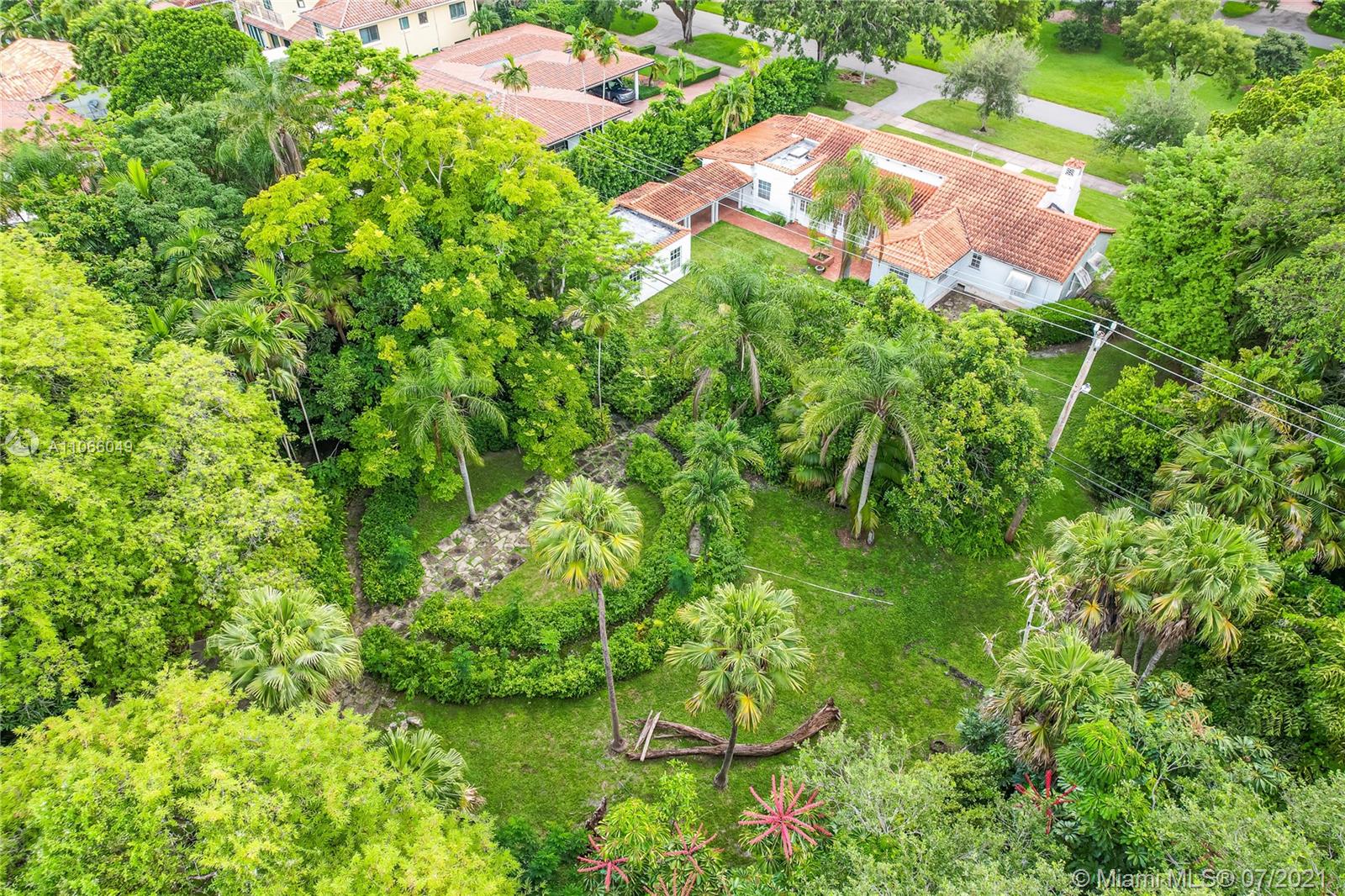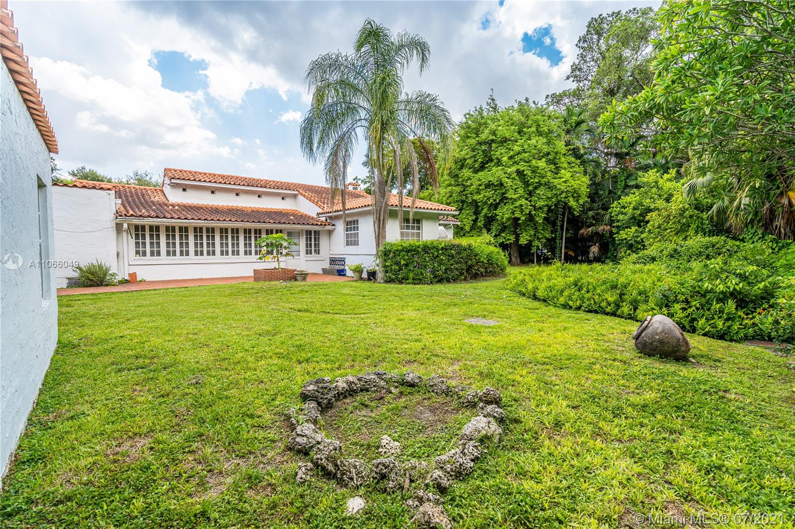 An original 1923 Mediterranean Revival historic home, commissioned by George Merrick, and designed by renowned architect Elliot Kiehnel. It sits on nearly an acre of land. The home features 3 bedrooms, 2.5 bathrooms, and a spacious living room overlooking the beautiful yard. A separate studio space offers lots of potential for an in-law suite, studio, or guest-house. Some historic features include the coral wall along 57th avenue, the stone walk-way and the outdoor coral fire-pit, and several coral structures. There are abundant trees and foliage including avocado, tamarind, mango, star fruit, egg fruit (canistel), and a Chinaberry tree. This home is a diamond in the rough, just waiting to be restored to your liking.