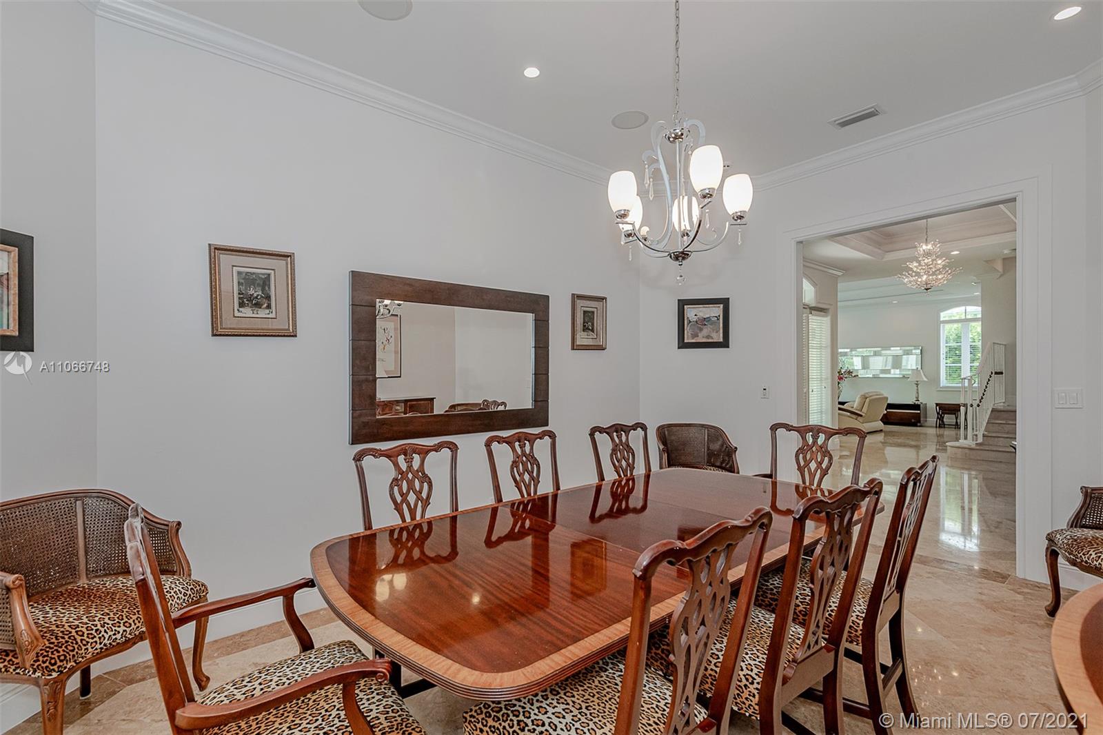 Unique home built to the old building codes allowing more living sq.ft. Well designed, 6 BD in-suite BA plus half bath. Main level offers guest suite and maids room. Upstairs landing can be expanded, 3 storage closets. Double door master entry, his/her closets. black out shades, private terrace, separate shower, tub, 2 vanities. All bathrooms have upgraded countertops. Water tight roof, 3 zoned AC, impact windows/ doors, heated pool. Two car AC garage . 4,500 sq.ft. under AC plus 5,100 total sq.ft no longer allowable. Kitchen w/ sub zero, Miele, Poggenpohl cabinets granite countertops, Extras: surround sound ,built in speakers, touch lighting, custom chandelier, Covered patio , heated pool w/fountain . Ideal for large family ready to move in. Walkable to the Village Green or school.