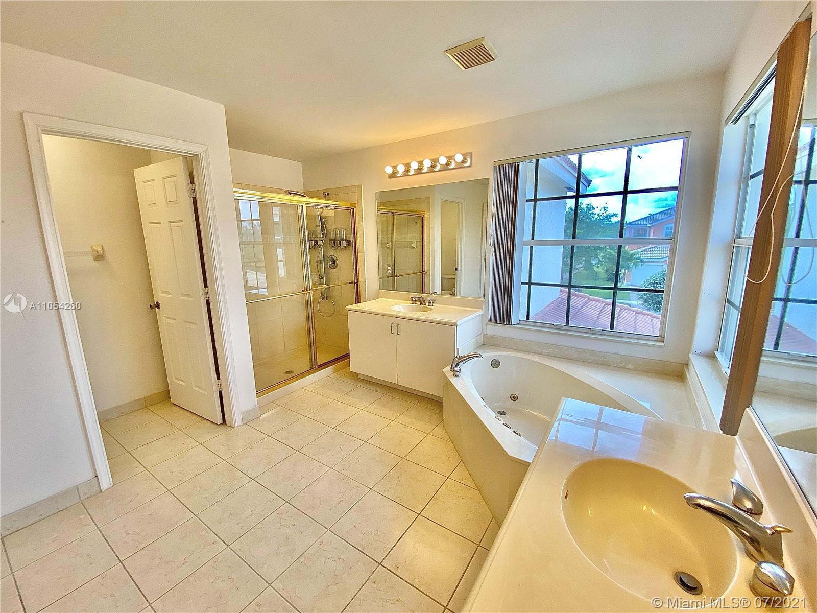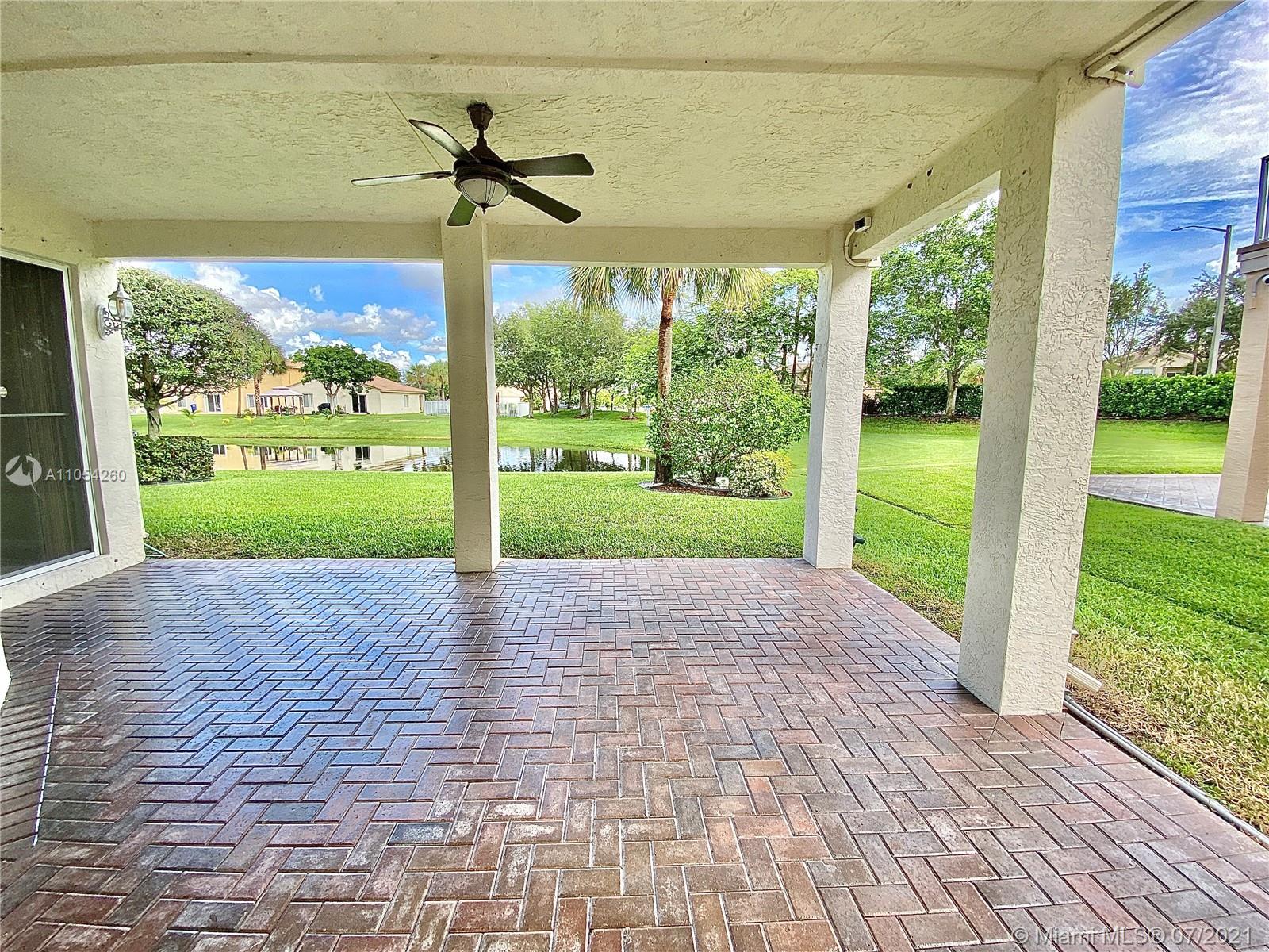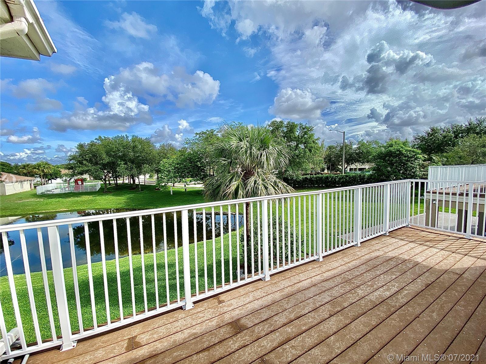 If you are looking for SPACE, this meticulously cared for & beautiful WATERFRONT HOME offers the perfect size & layout, with amazing features including a 3 CAR GARAGE & PLENTY OF ROOM for daily activities. Bright interior with lots of windows, porcelain tile & new wood/vinyl flooring upstairs. This AMAZING & BRIGHT model offers an OVERSIZED OWNER'S SUITE with sitting area & private wide balcony overlooking the BEAUTIFUL GREENERY & WATERFRONT SETTING. Downstairs offers the perfect in-law quarters, open kitchen with bar counter seating, large family room, breakfast nook, dining, living room, laundry room & covered patio. Additional features include accordion shutters, 2 A/C units, brick pavers in driveway & patio. Located at GATED ENCLAVE with community pool, tennis, gym & basketball.