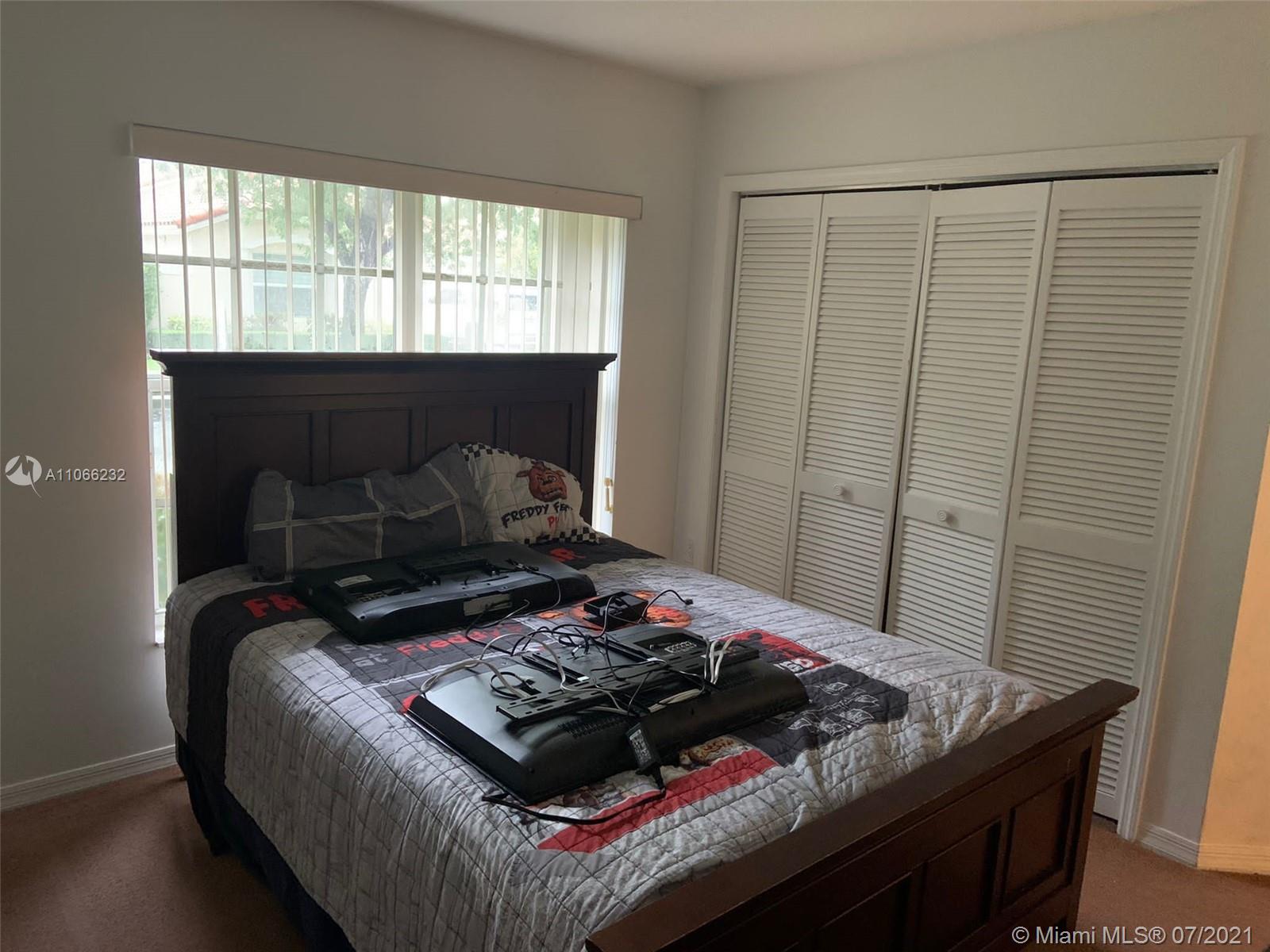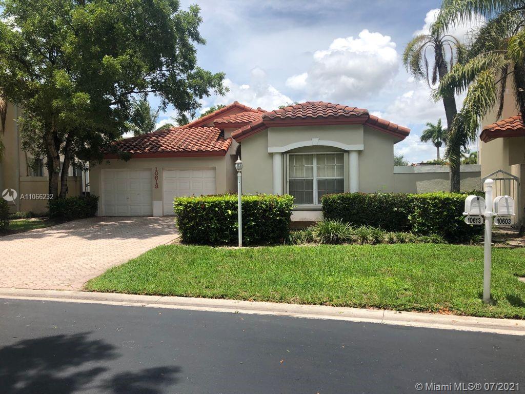 One story single family home, 4 bedrooms, 2 baths, 2 car garage, upgraded kitchen cabinets and counter tops with lots of storage space, canal view, carpeting in bedrooms . Enjoy the Doral Park Country Club facilities.