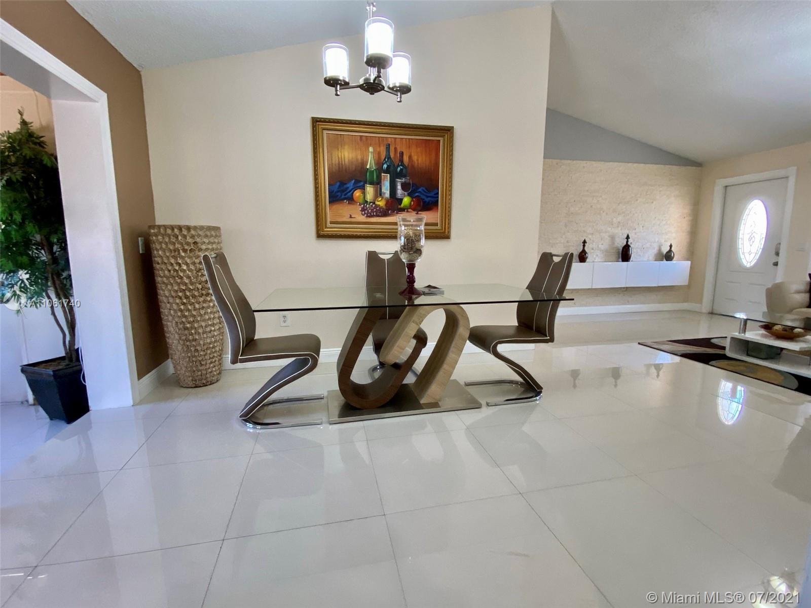 This beautifully updated home features large ceramic floors, a modern stone wall, impact windows and plenty of natural light. The kitchen has modern cabinets, quartz counter tops and stainless steel appliances. The bathrooms were tastefully updated and offer a spa feel. The bedrooms have laminate flooring. This property offers a separate in-law quarters with a separate entrance, a family room and a utility rom with newer washer and dryer. Enjoy the spacious fenced yard with fruit trees, which offers ample space for a pool a cooking station and a play ground. The two large sheds on the side yard offer plenty of storage and stay out of site. Located in the center of Pembroke Pines, close to schools, dog and children's park, stores and hospital. No association. Roof about 9 yr, air 1