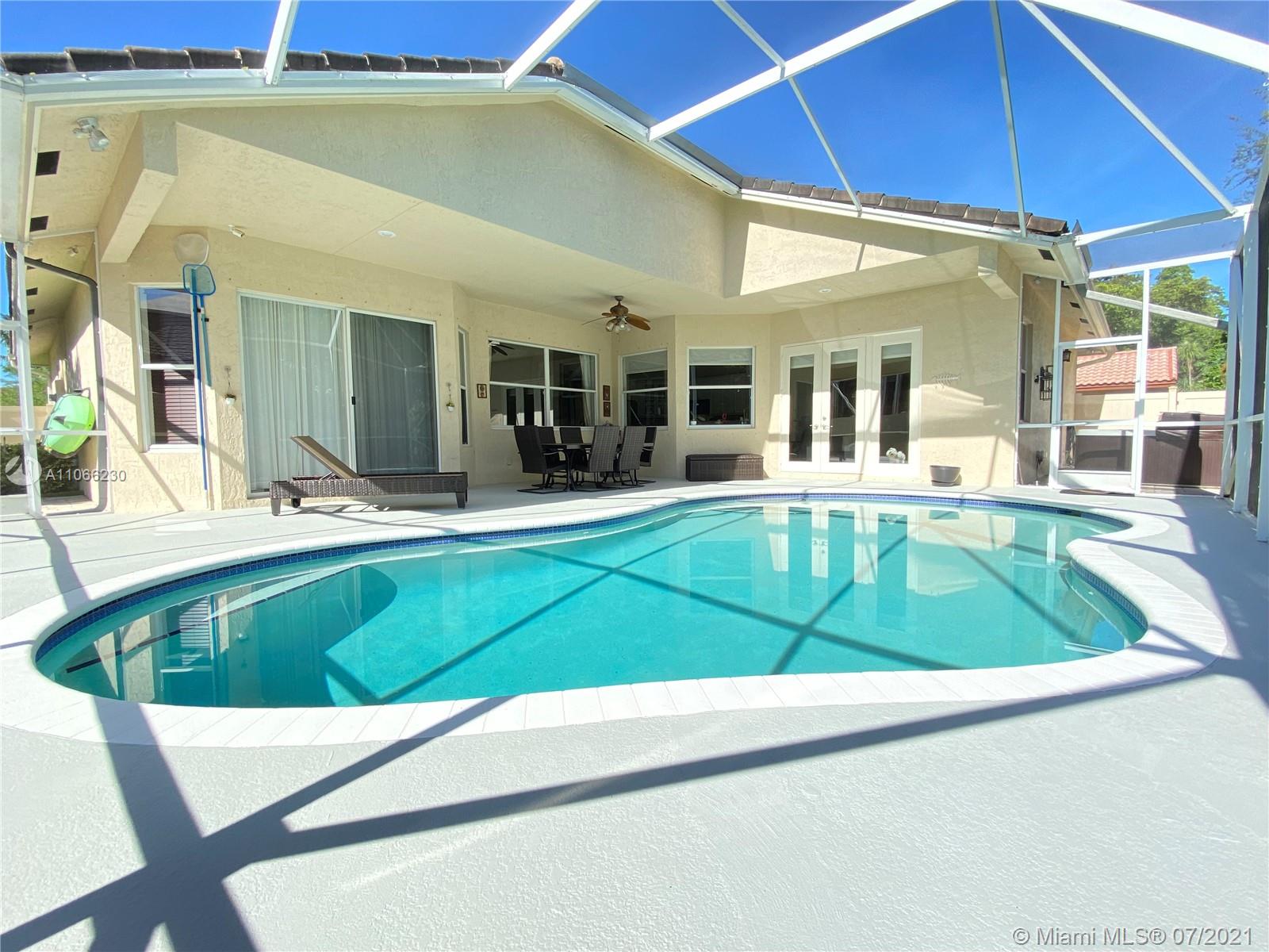 Right in time for the new school year! Located in the exclusive neighborhood of Jacaranda Cay. Property completed in 2002 under the stricter Building Codes. It's one of the newer homes in the community. It has 4 bedrooms and one office which is easily converted into a fifth bedroom. With three full bathrooms and a 3-car garage it will comfortably accommodate a large family. Features a screened-in pool and above ground Jacuzzi. The canal waterway in the rear easily connects to its Jacaranda Cay neighbors for tons of fun during their canoeing or kayaking adventures. Plenty of space in the pool deck for family gatherings and B-B-Q’s. Near I-595, Central Park, American Heritage Private School, Ft. Lauderdale airport, supermarkets and the Sawgrass Mills Mall. Carrier 5-ton A/C only 5 yrs. old.