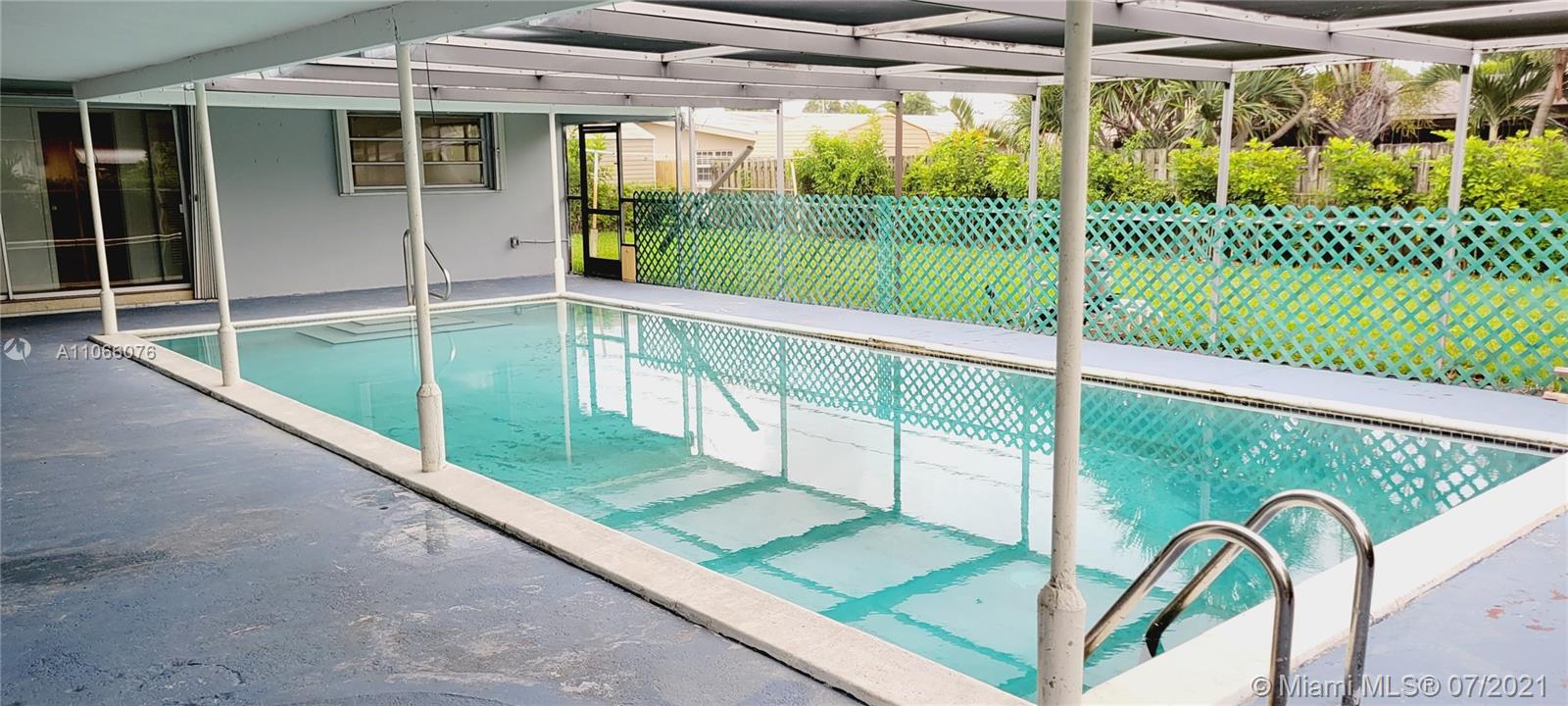 Nice 3 bedroom 3 bathroom house with a pool and a garage. Screened in pool area. Solar panel on roof. Roof 2021, new electric, plumbing Updates...Hurricane Shutters.. Terrazzo floor which are easy to take care off. Painted all inside and outside. Read broker remarks please.